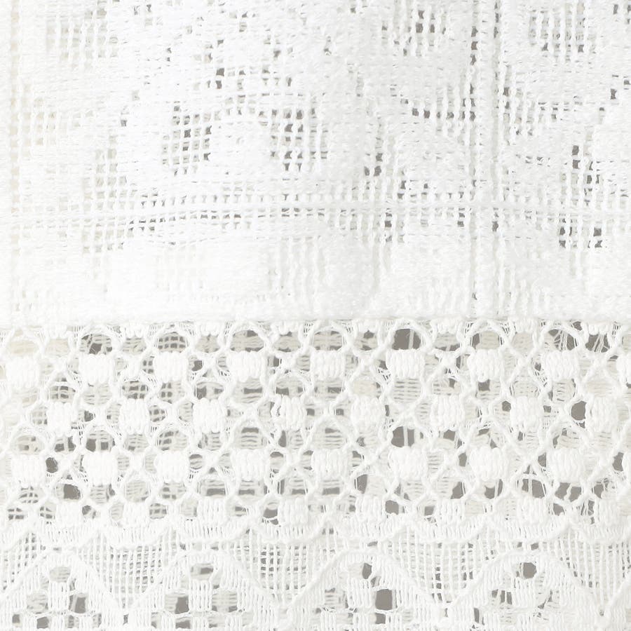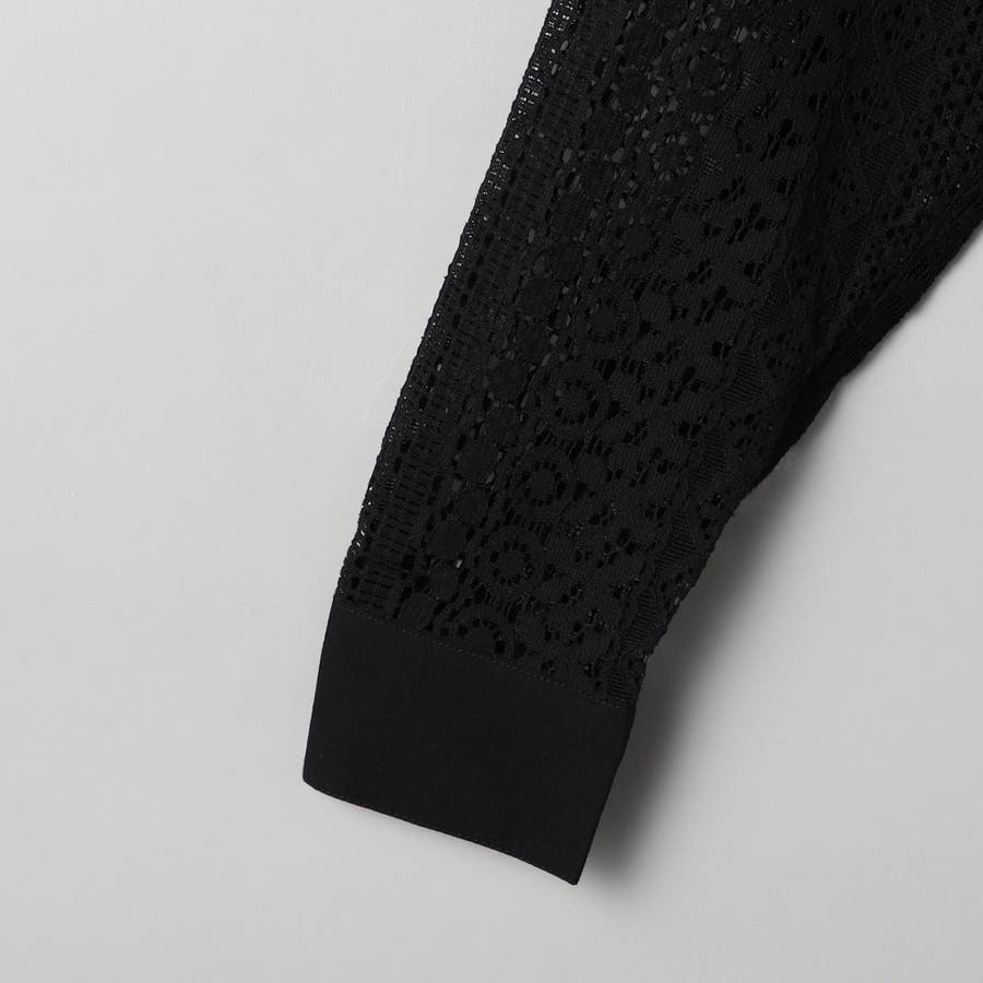 レース生地をパッチワーク風に切り替えた、リメイク風のレースシャツです。
