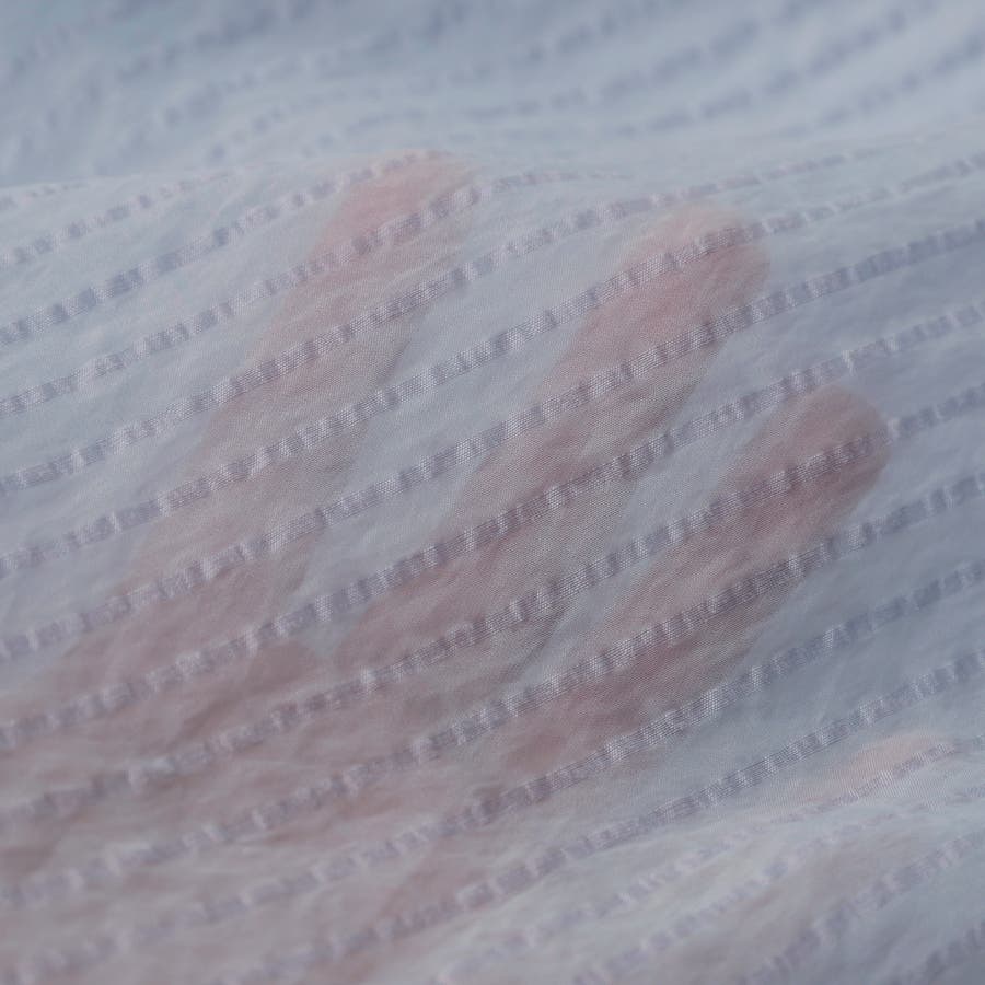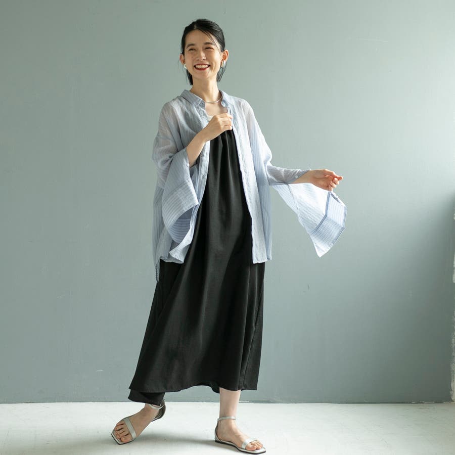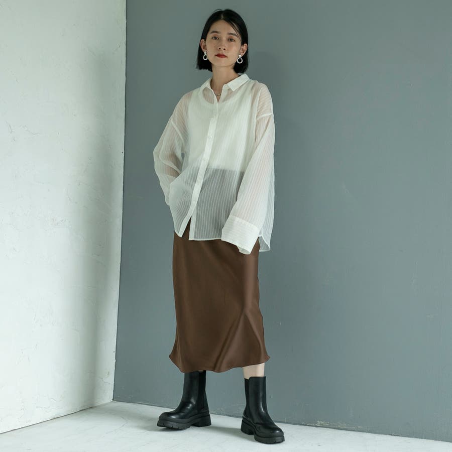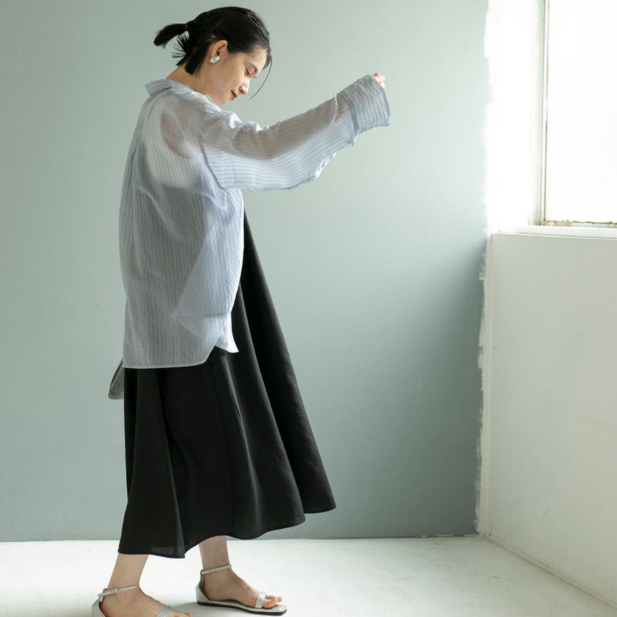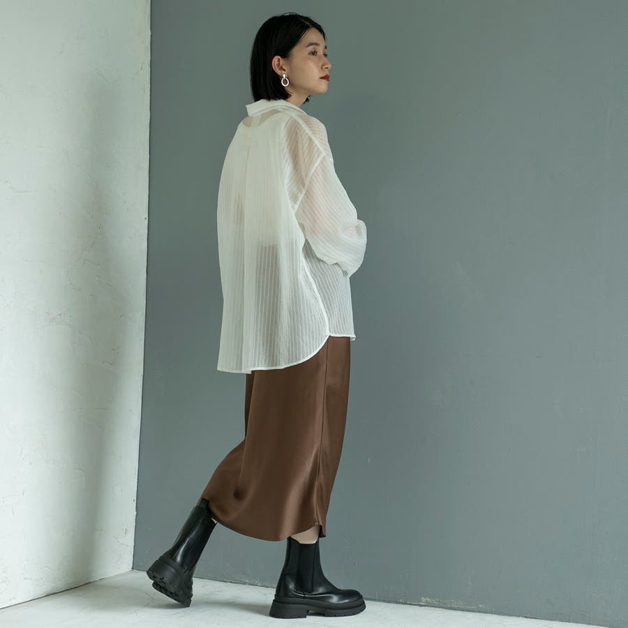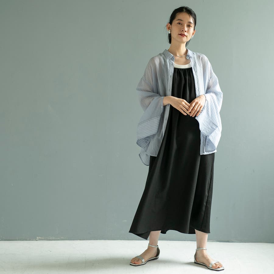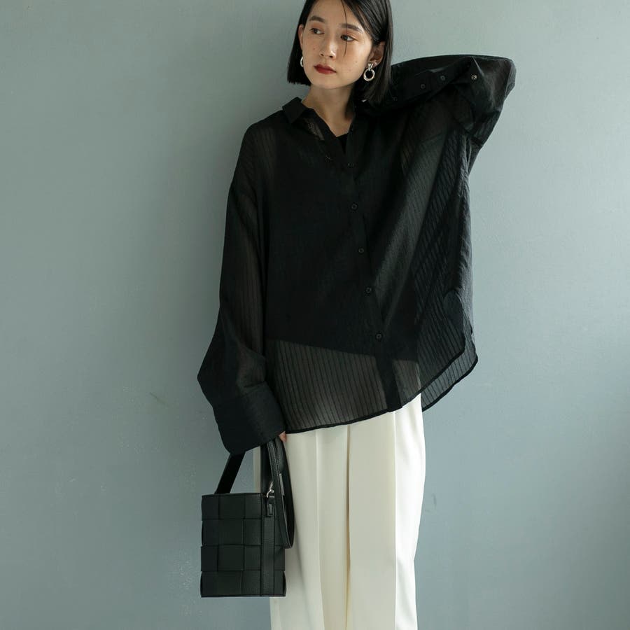 独特のシアー素材の抜け感が楽しめるシャドーストライプシャツは、アクセントとして、袖部分のスリットを肘あたりまで深く設定。