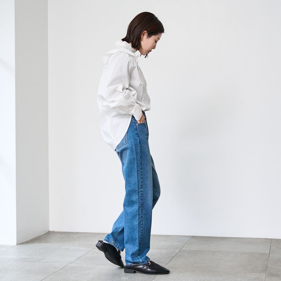 再生繊維は吸湿性に優れており、肌触りがよく光沢がありドレープ性があるため、キレイ目な洋服にも使われますが、綿混にすることで、キレイ目過ぎずにナチュラルさがプラスされ、カジュアルにも取り入れやすい一枚となっています。