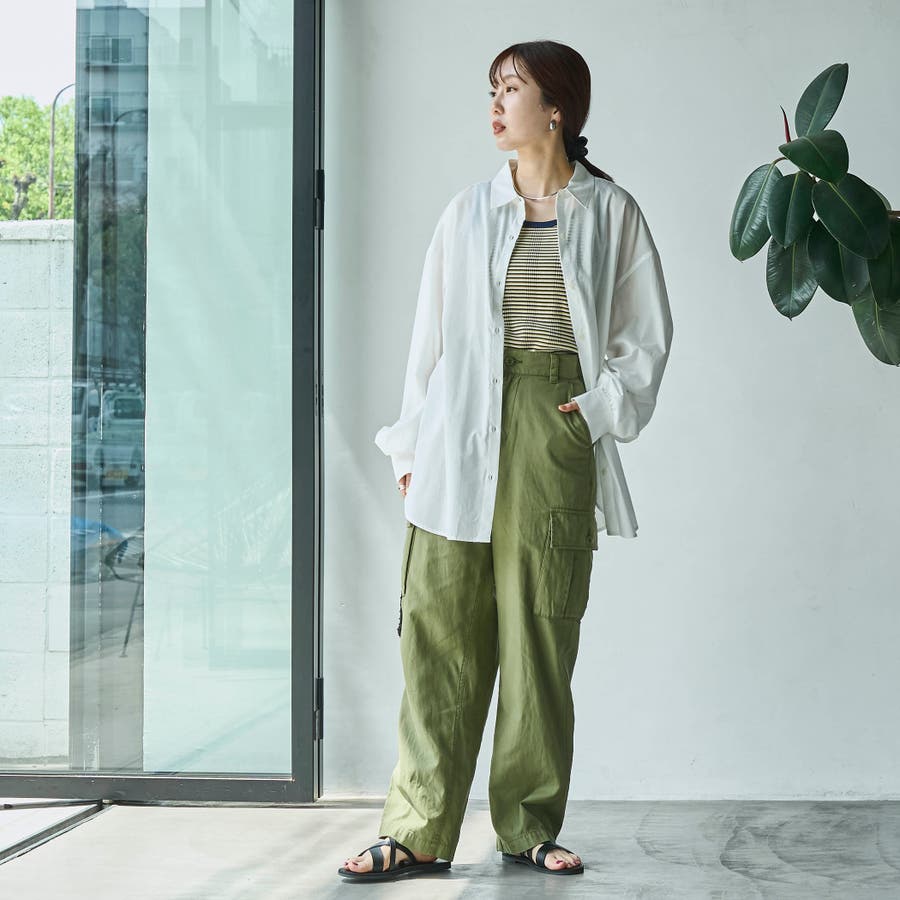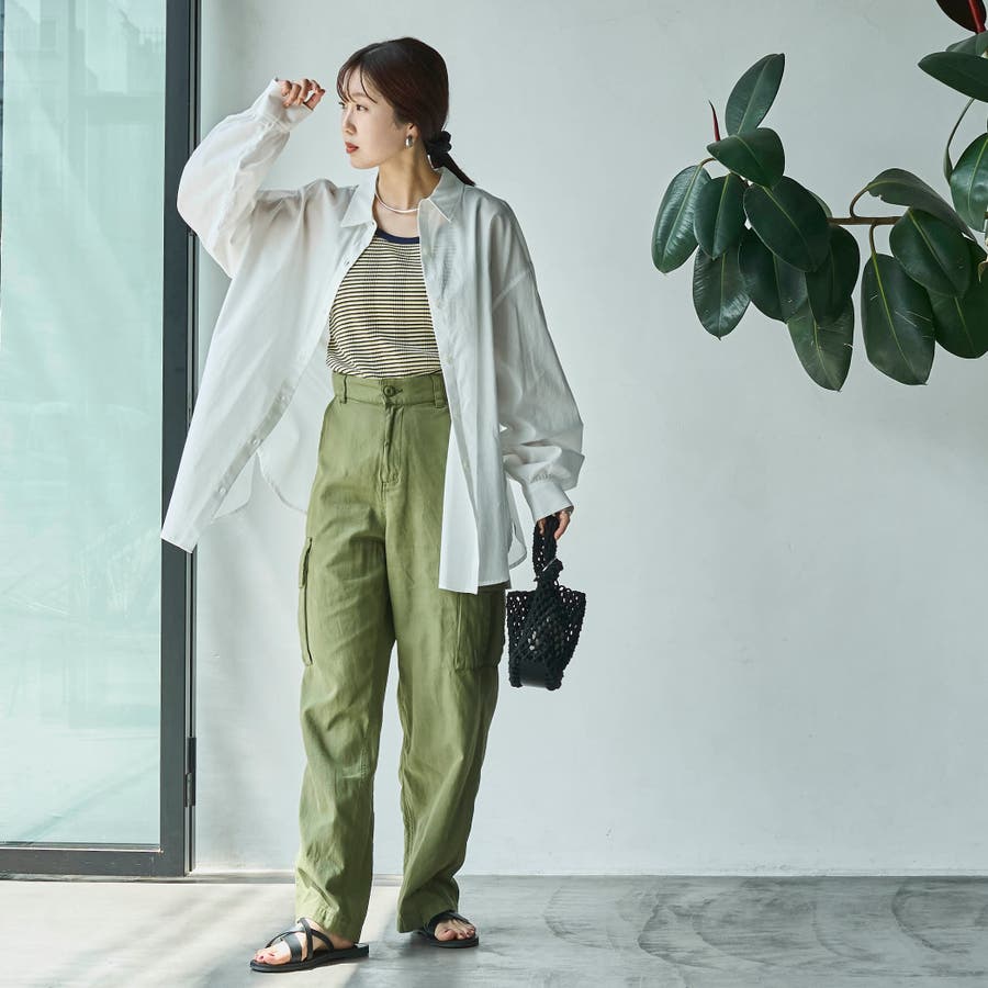 タンクトップやキャミの上からサッと羽織るだけでイマドキな春夏スタイルが楽しめます。