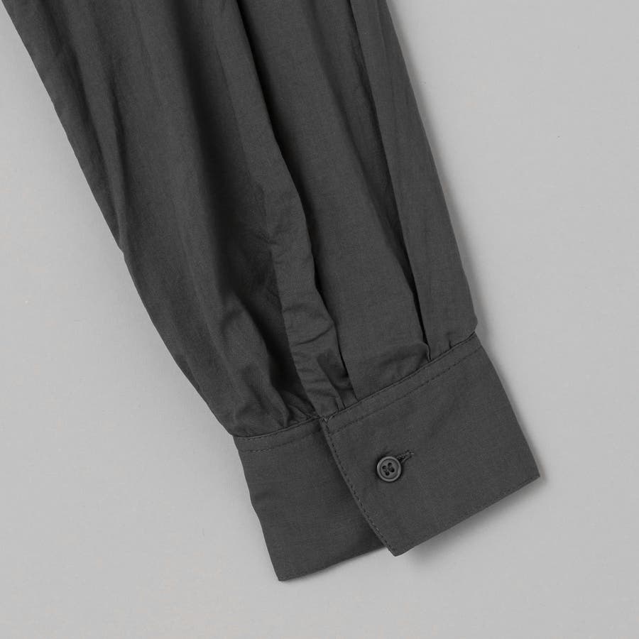 コンパクトな襟、袖口のギャザーやラウンドヘムで、さりげない女性らしさをプラスしています。