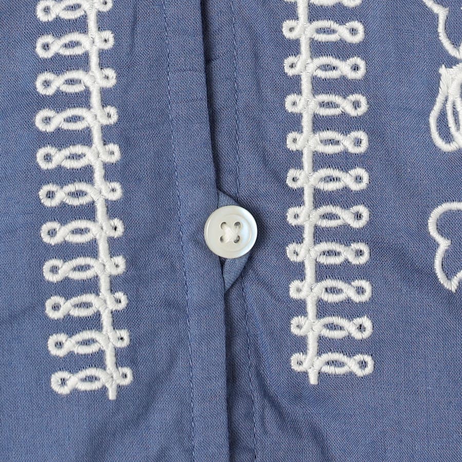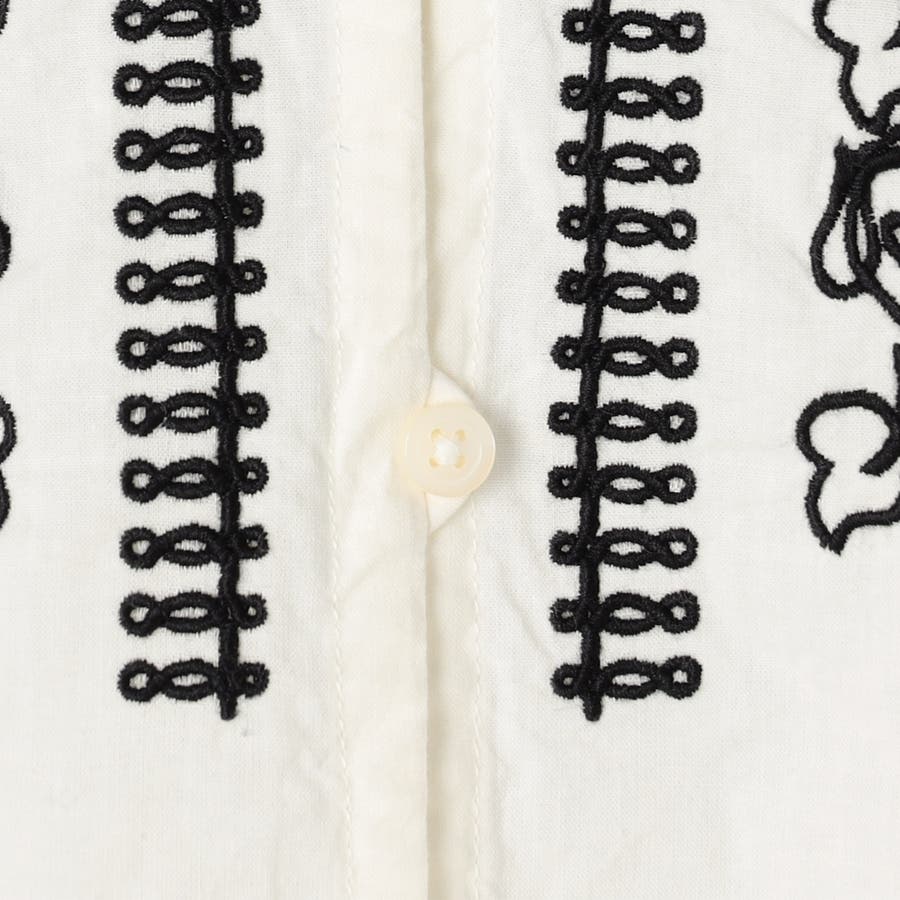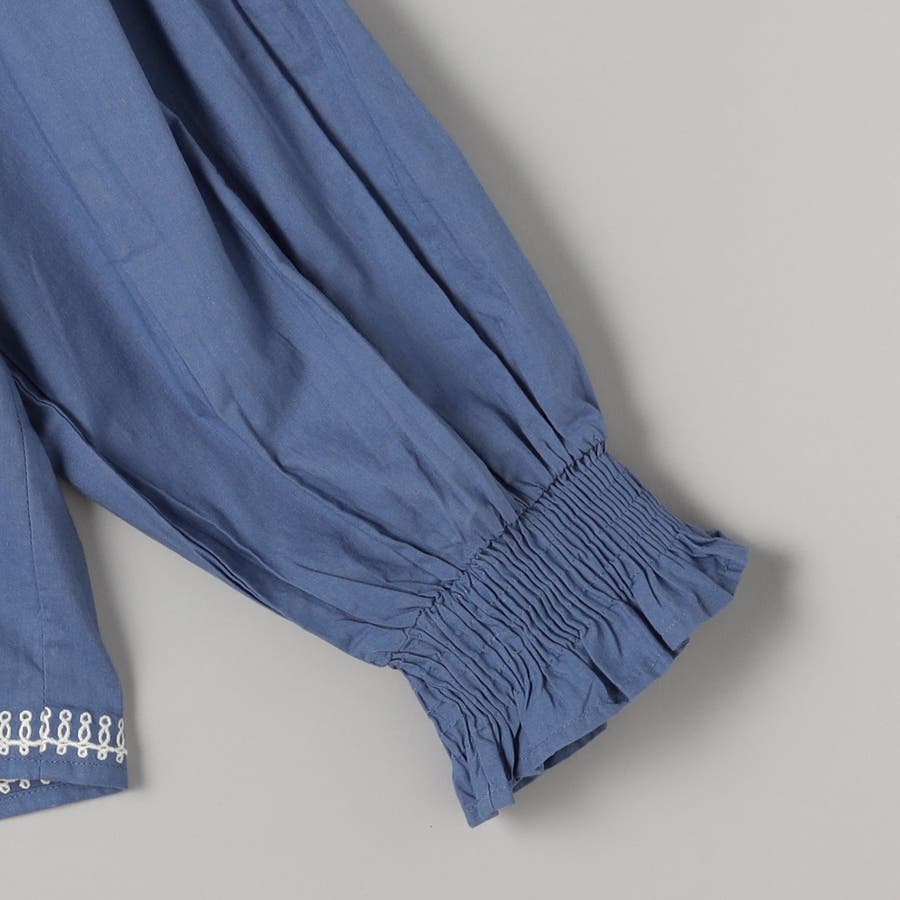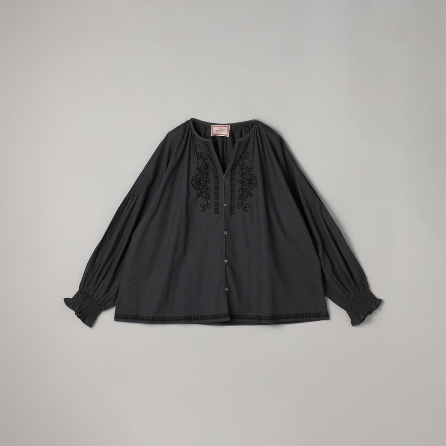 肌触りのよい綿100%の布帛を使用し、繊細な配色刺繍を施したエスニック調のブラウス。
