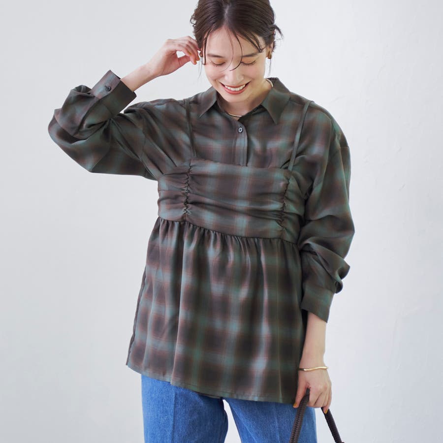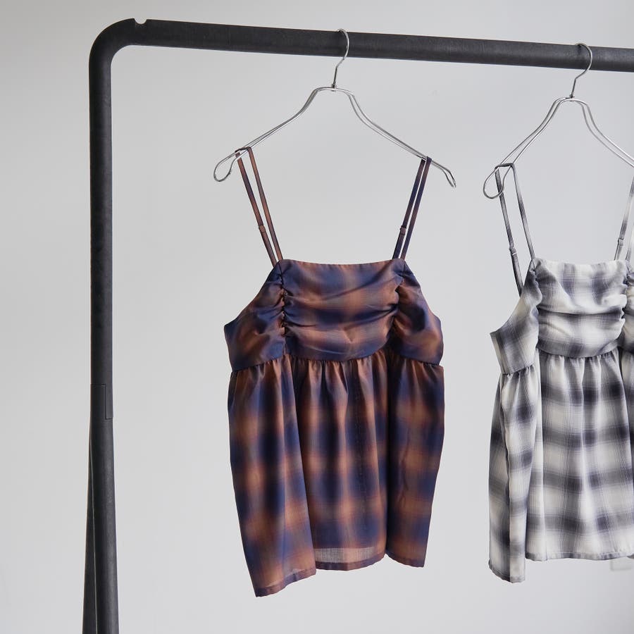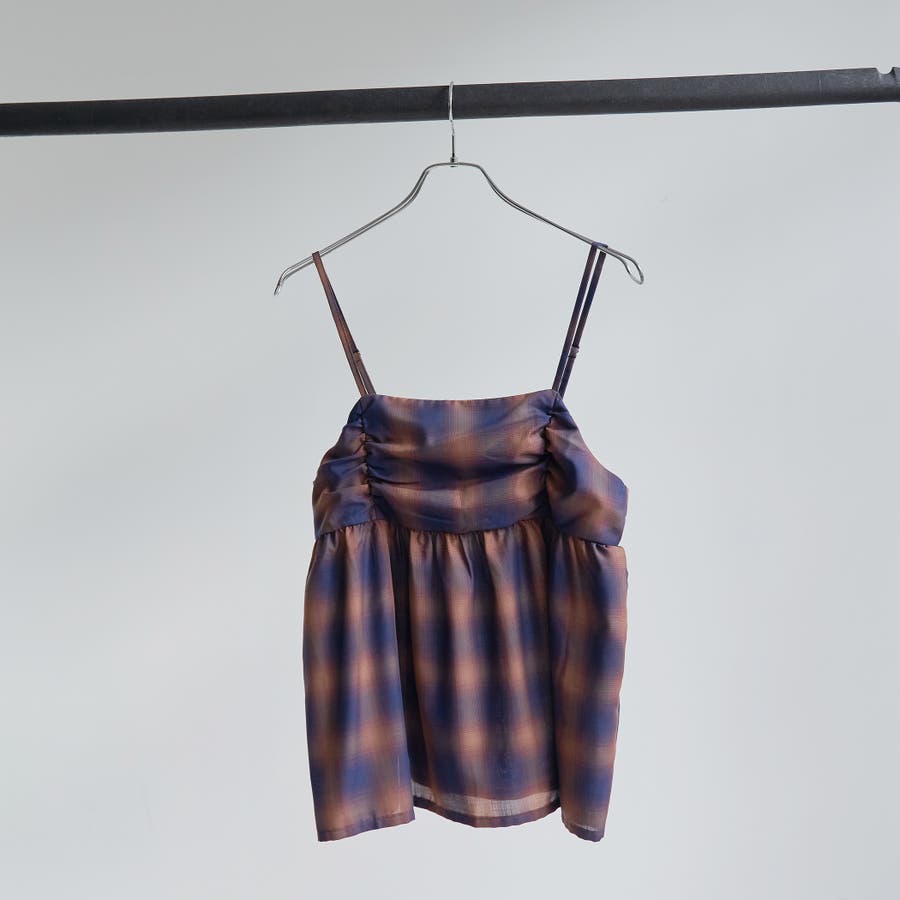 品名:シアーオンブレチェックギャザーキャミソール