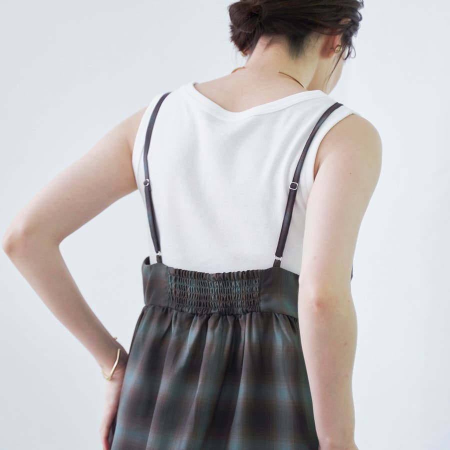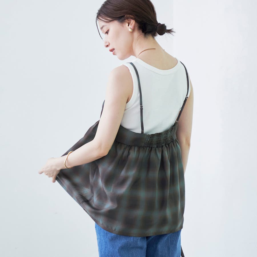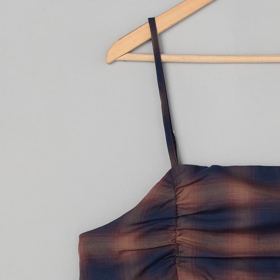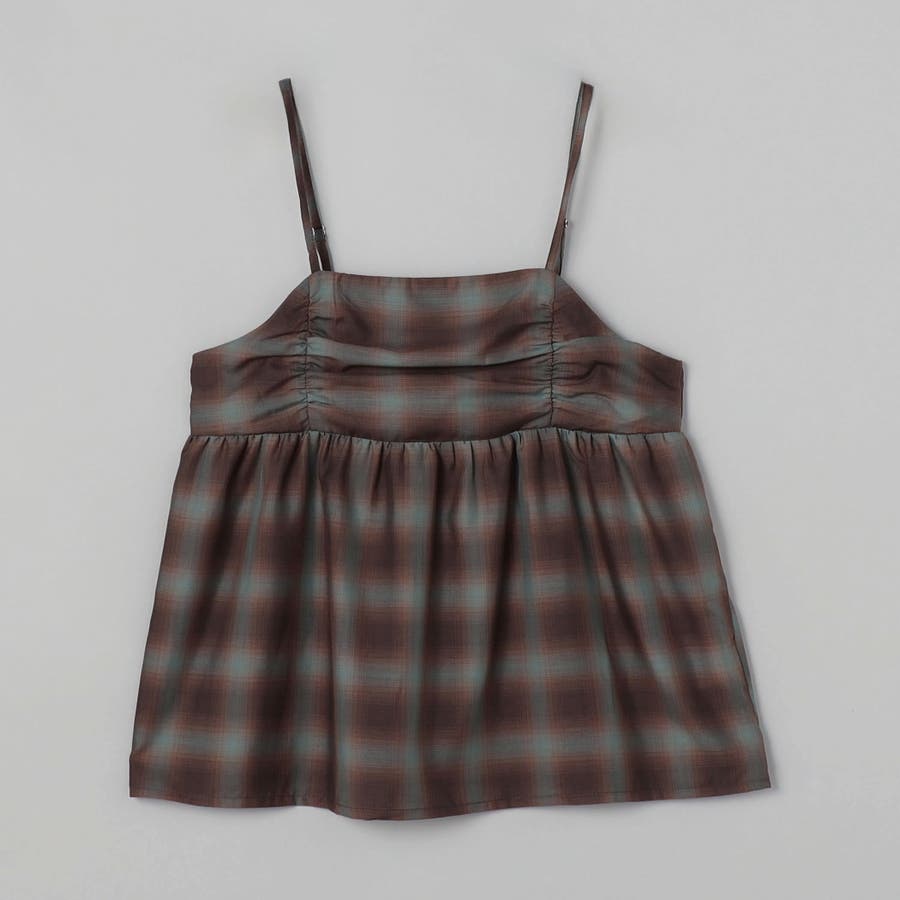 シアーオンブレチェックギャザーキャミソール