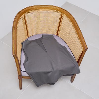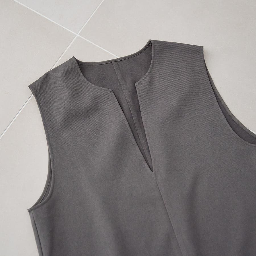 首元はキーネックデザインで、顔まわりをすっきり見せつつ、女性らしい抜け感もプラス。