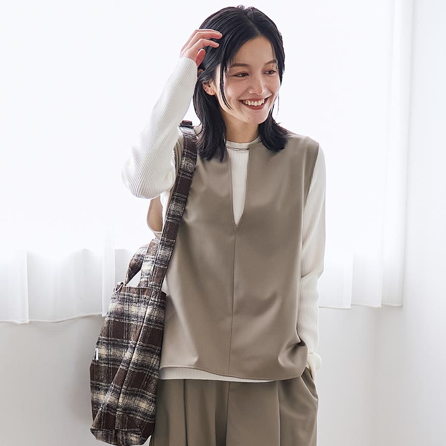 キーネックで抜け感を。重ねて映える、冬ベスト。