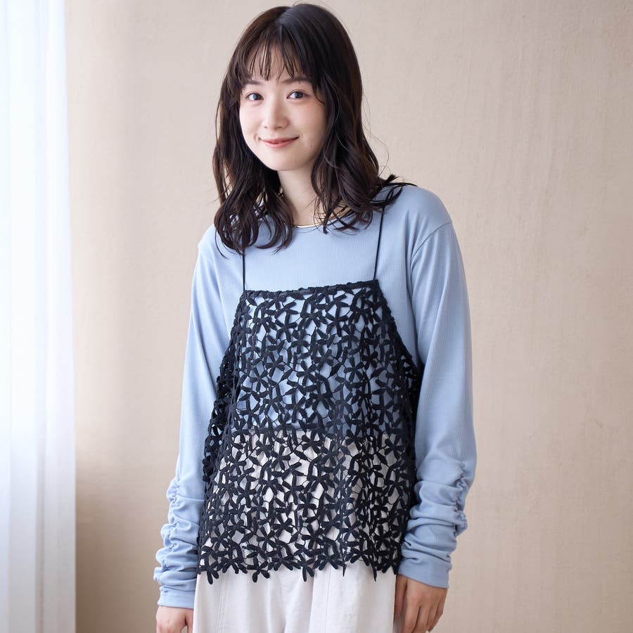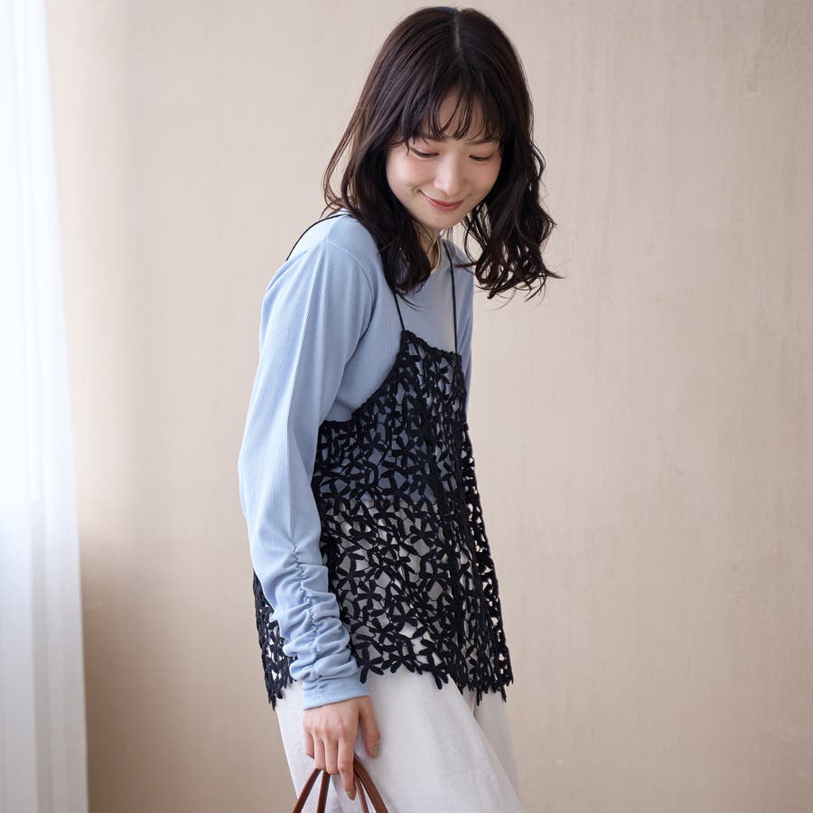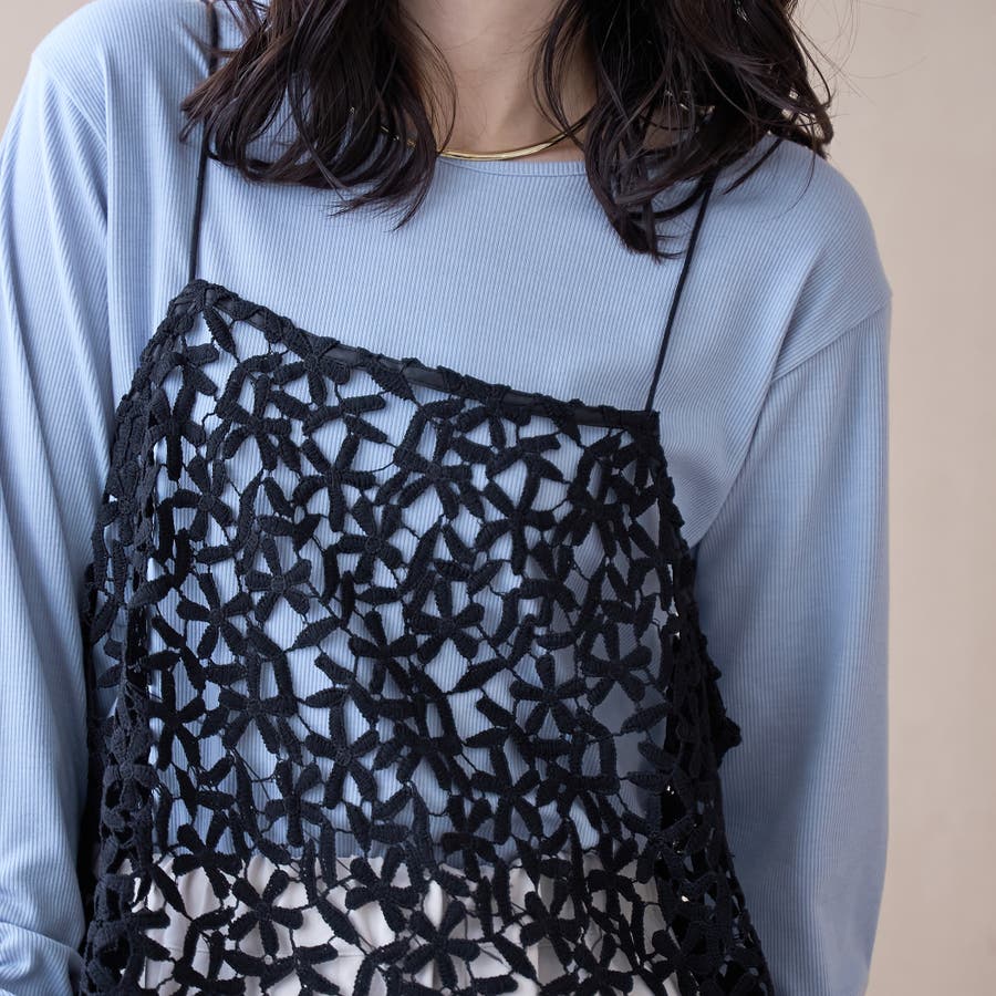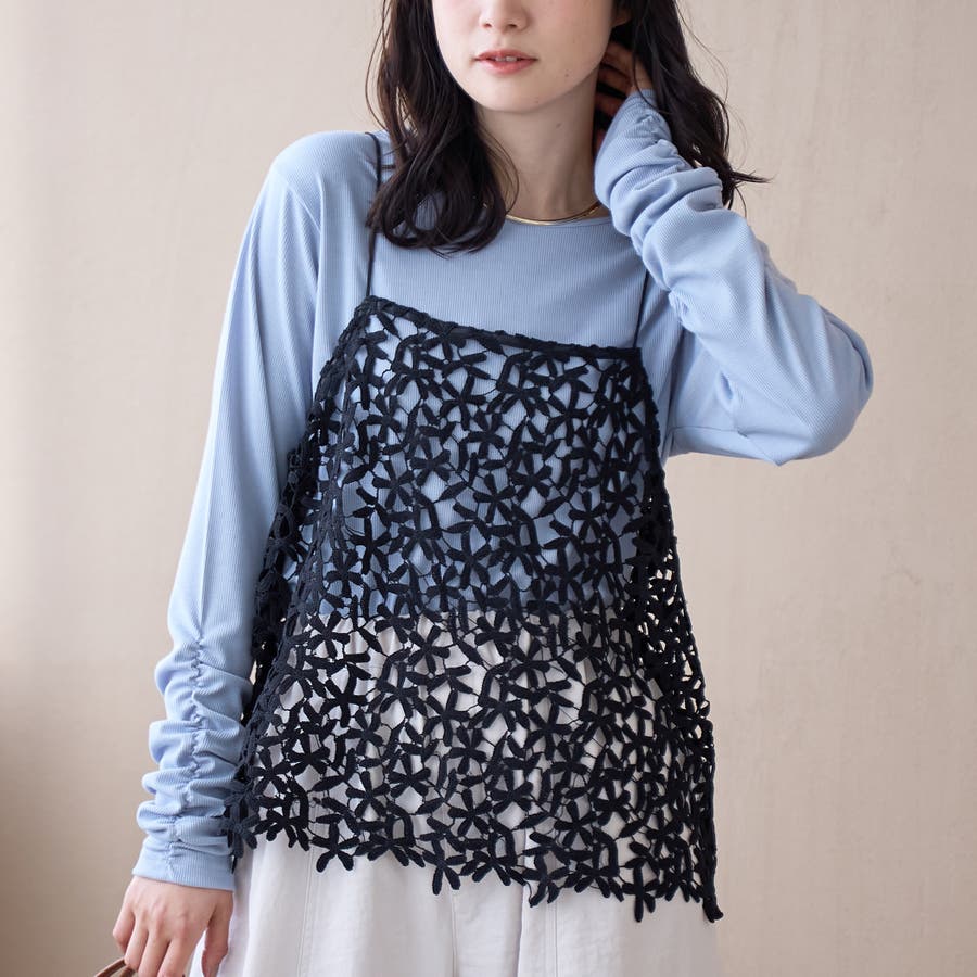 繊細なフラワーレースが目を引く、レイヤードにぴったりなレースキャミ。