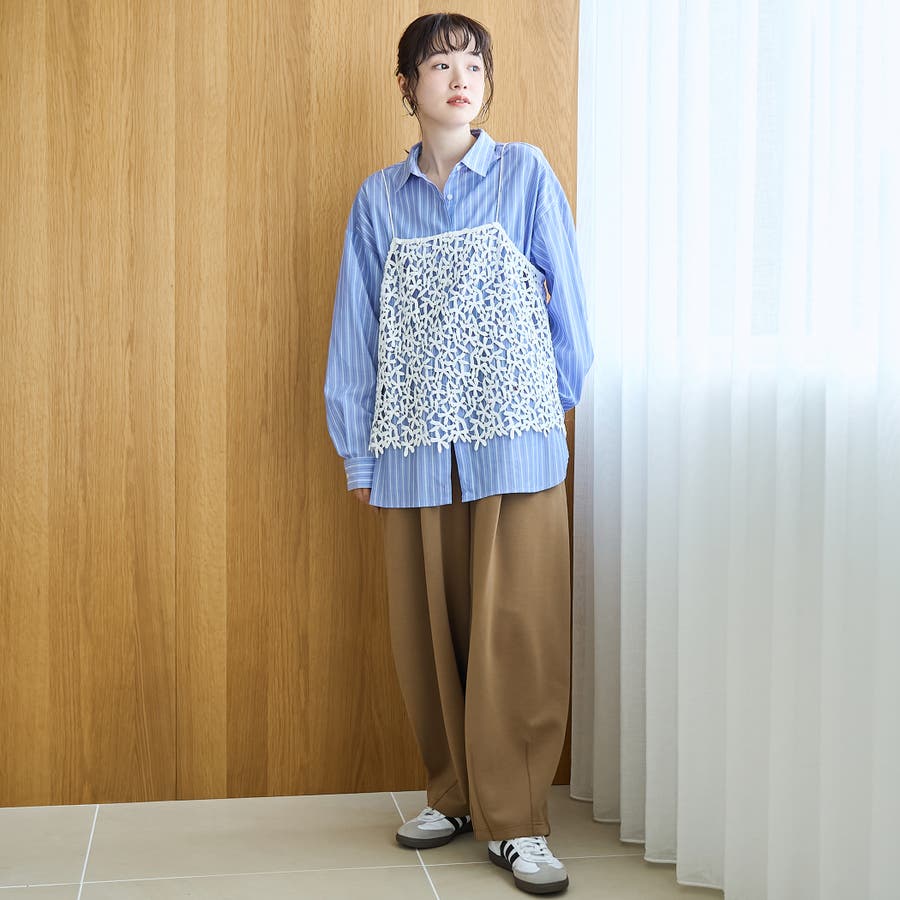 甘くなりすぎずロンTやシャツとのレイヤードと合わせて、大人っぽく着こなせます。