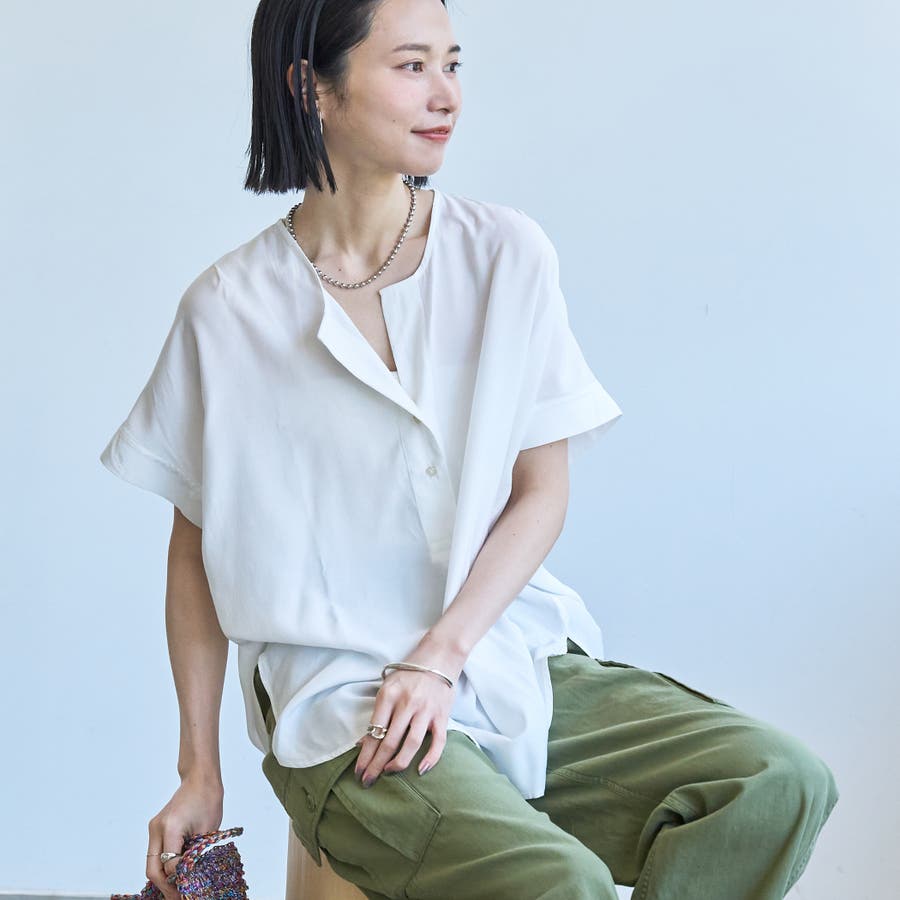 ほどよいゆとりをもたせつつ、スキッパー襟がお顔周りをすっきりと映します。