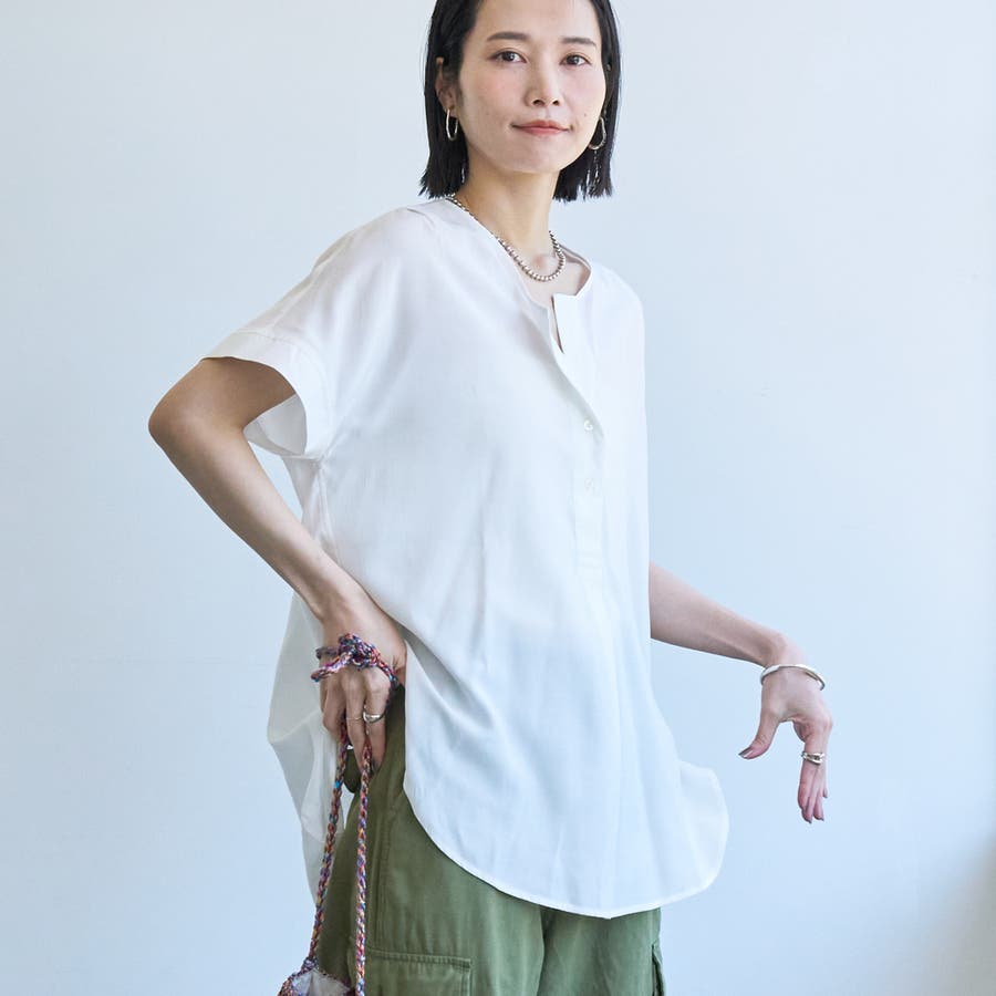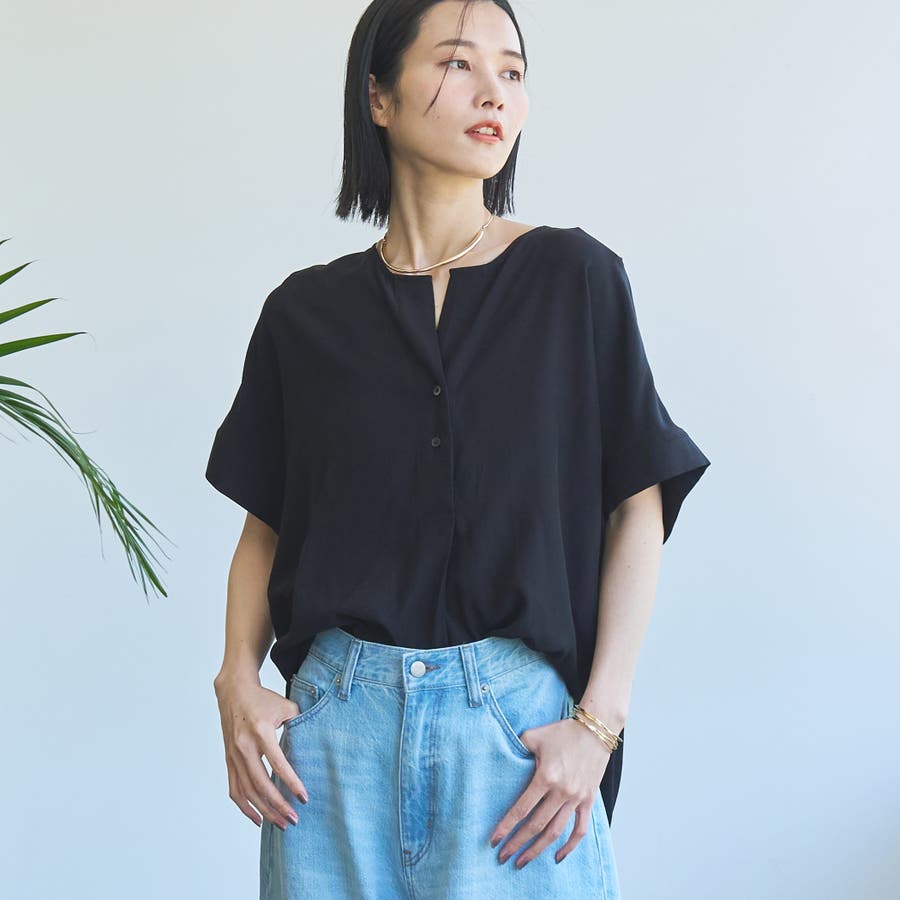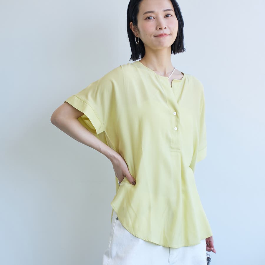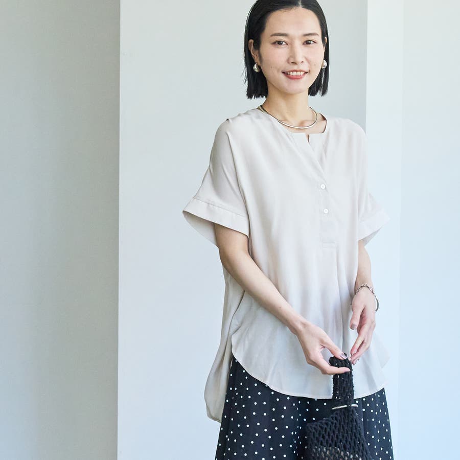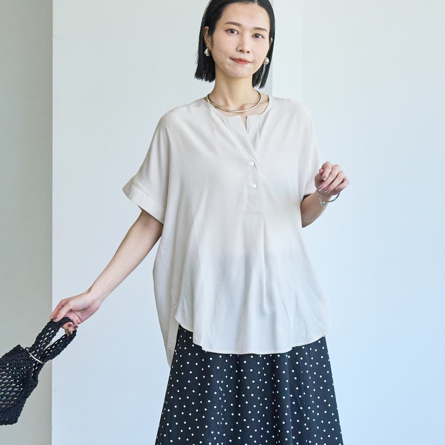 ひんやりとした快適な着心地のスキッパーブラウス。