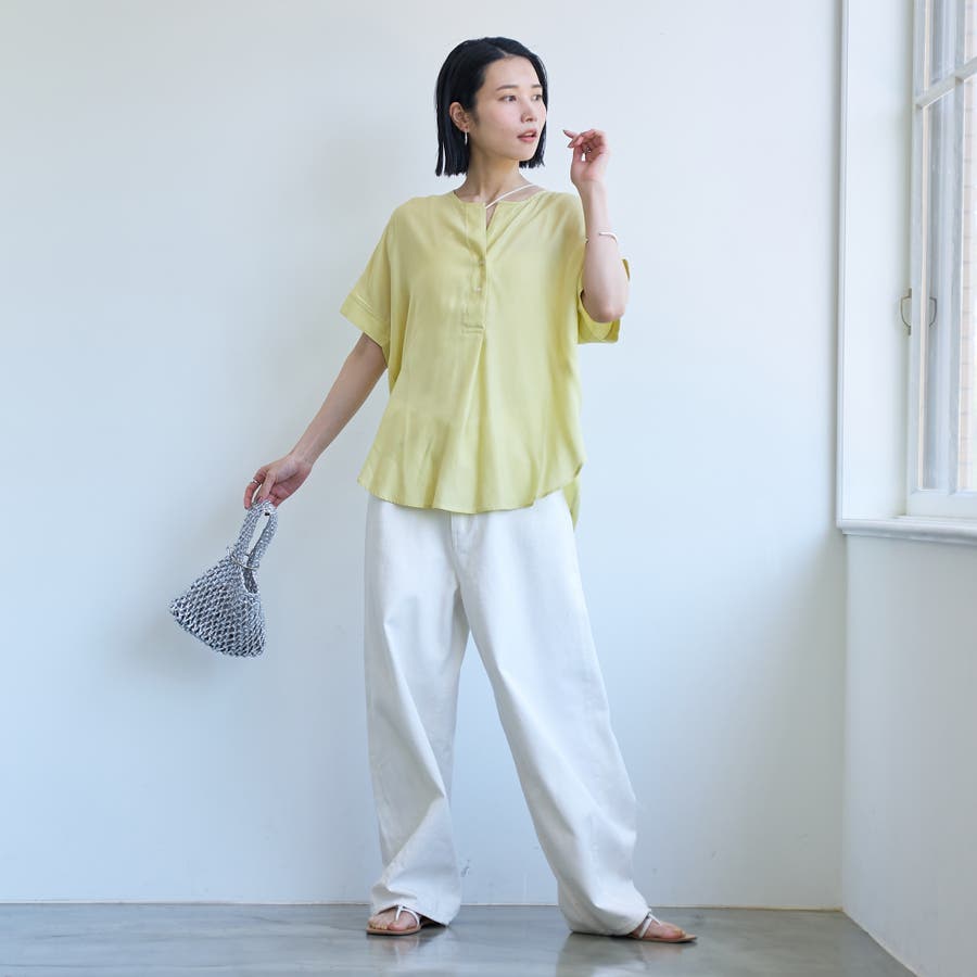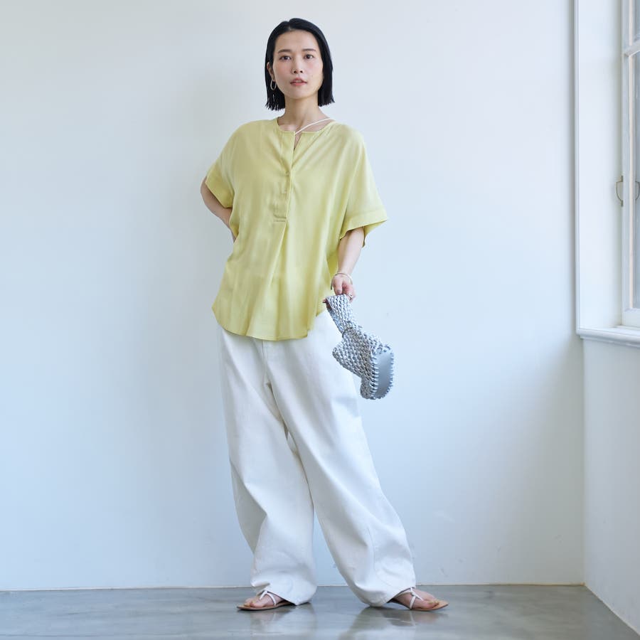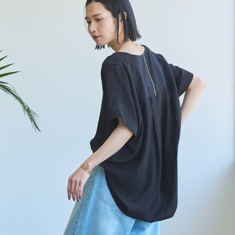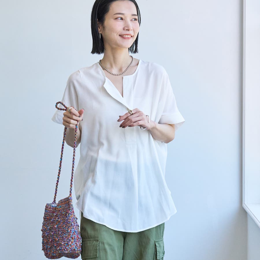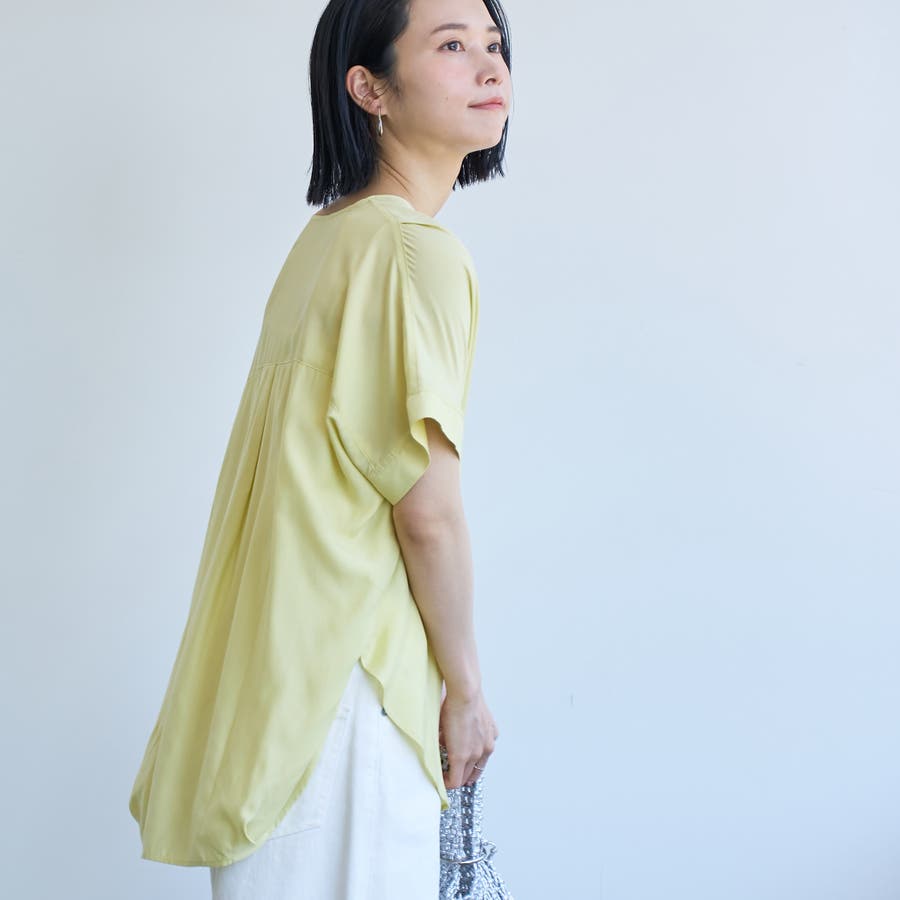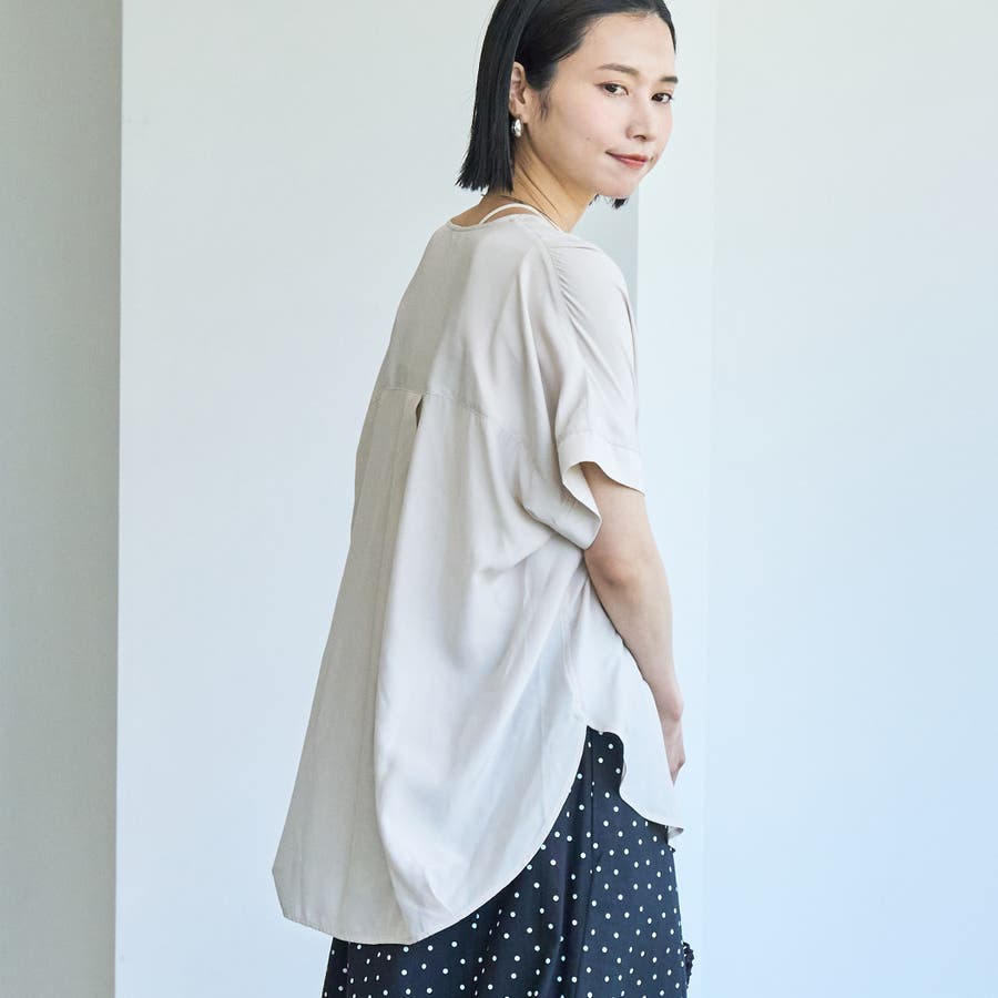 ひんやりとした快適な着心地のスキッパーブラウス。