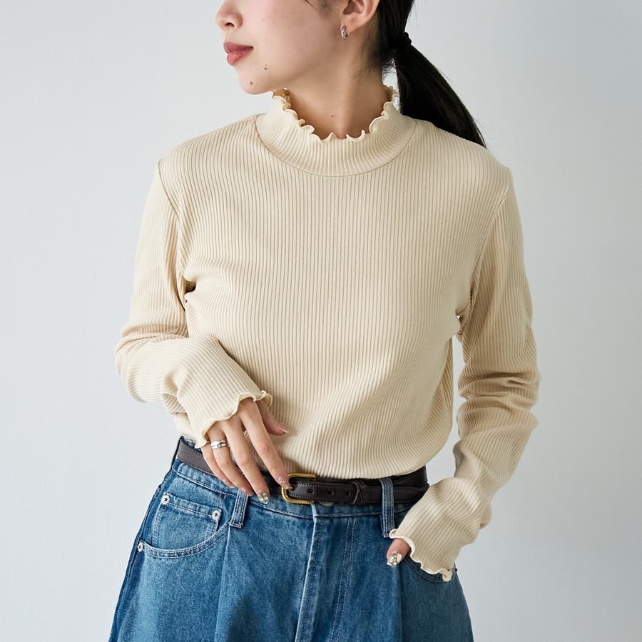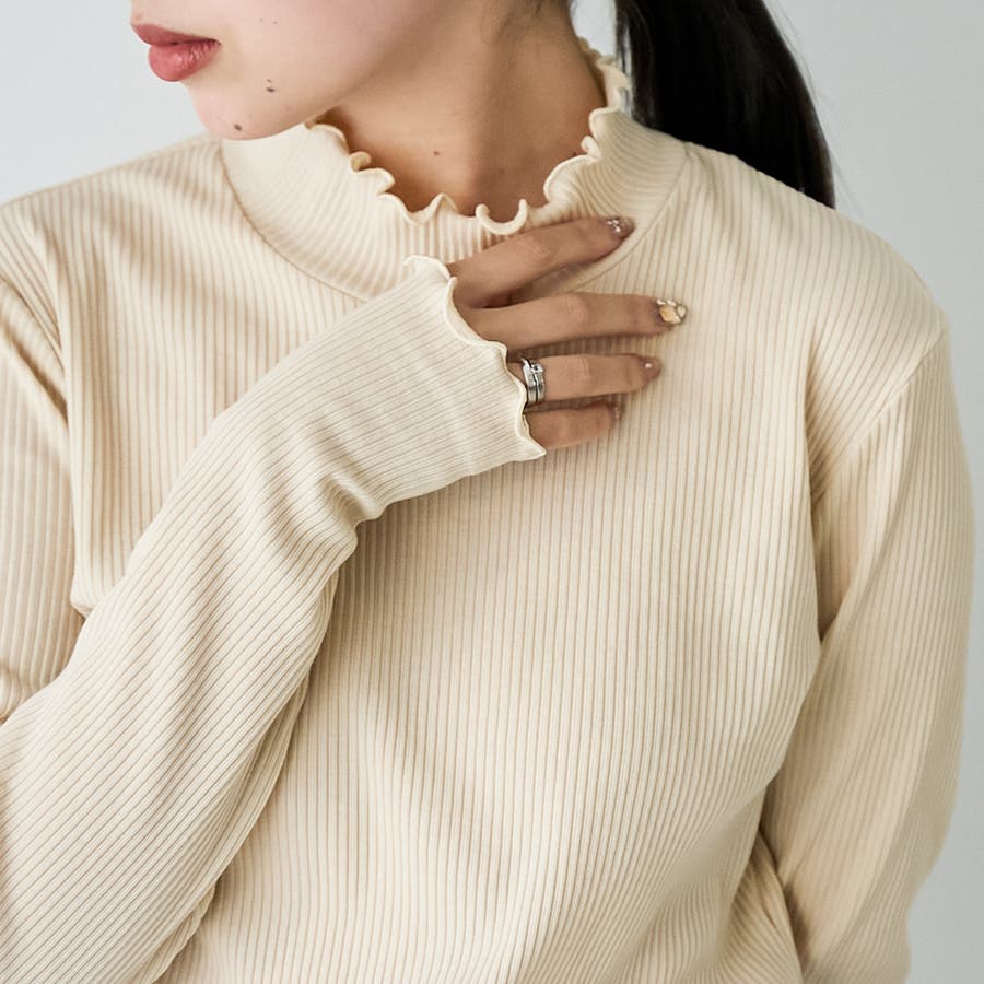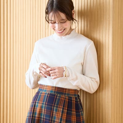 〇メロウ仕立てが映えるタートルネックデザイン