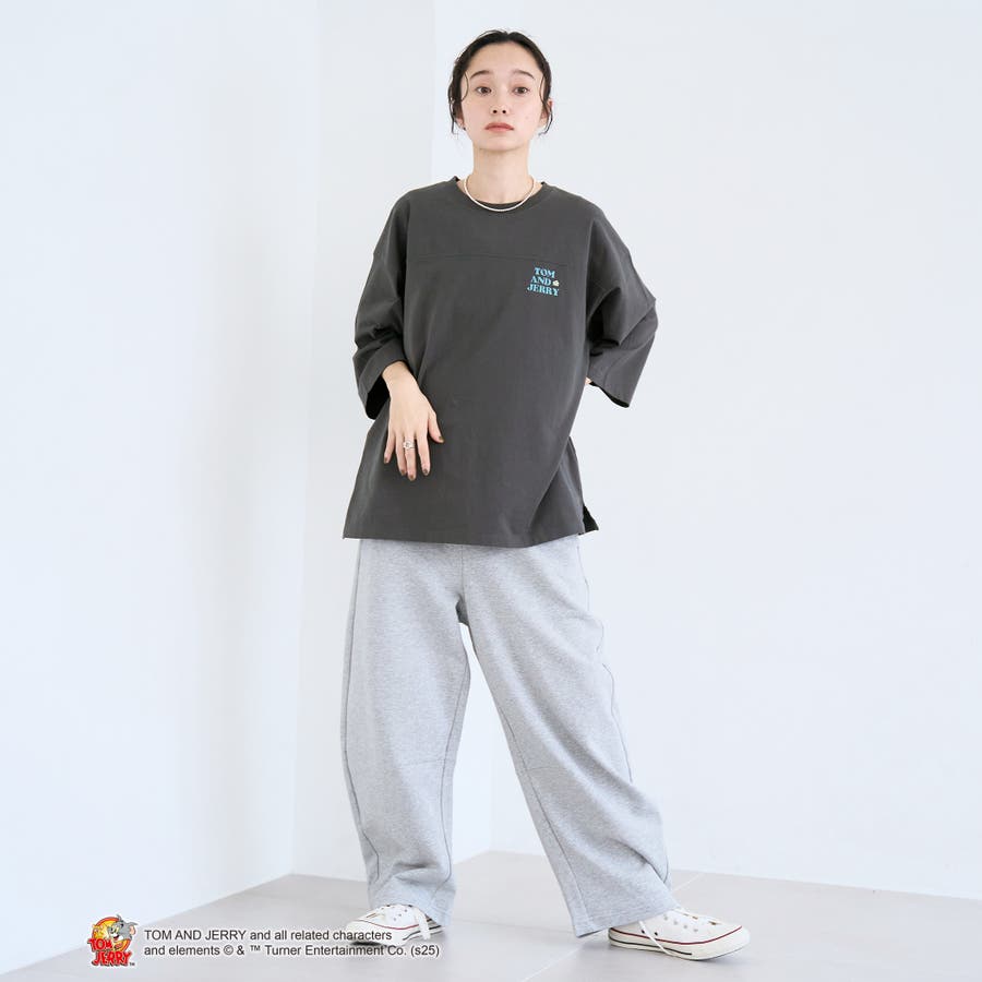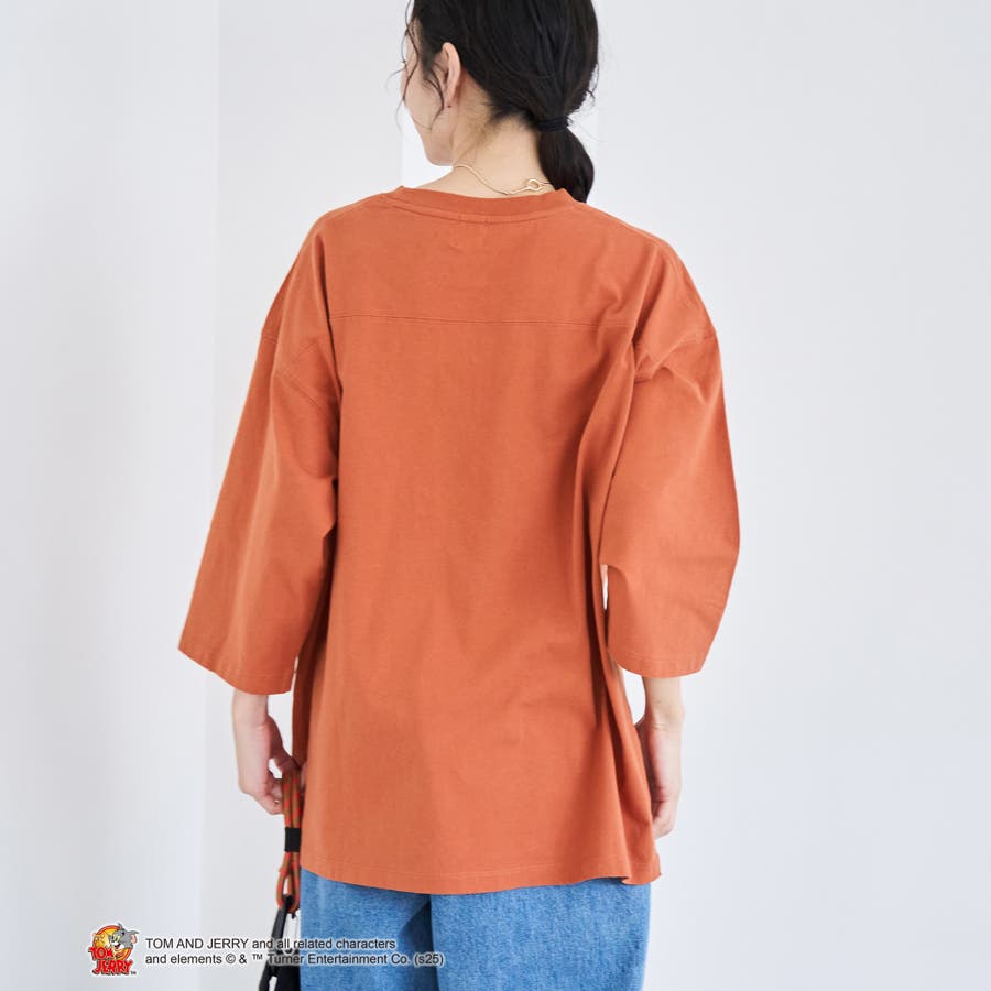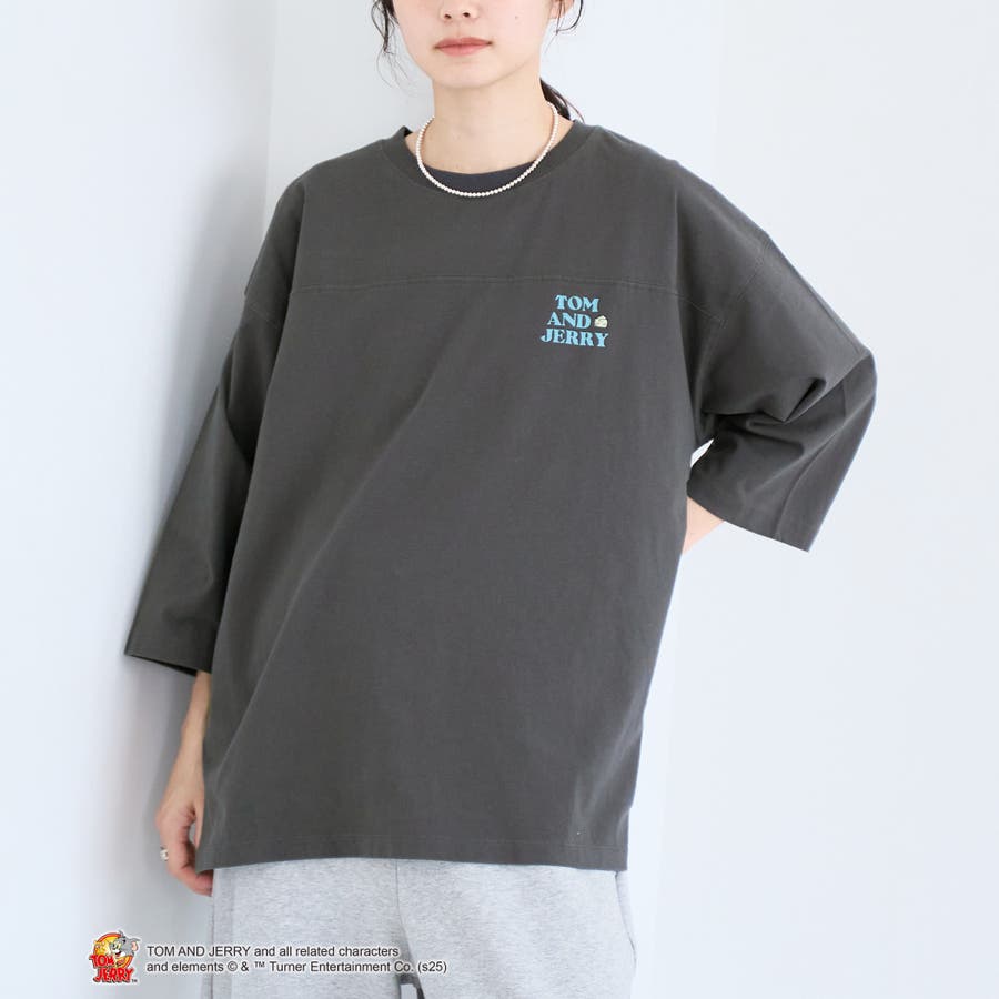 トムとジェリーの別注デザインによる、メンズライクなフットボールTシャツ。