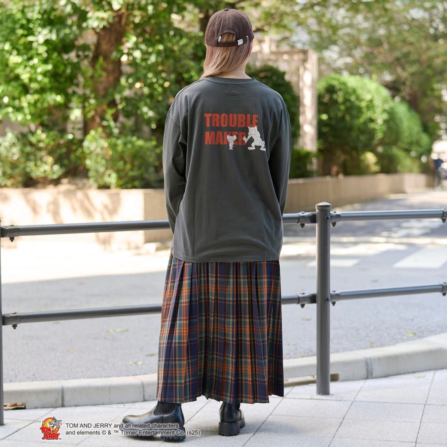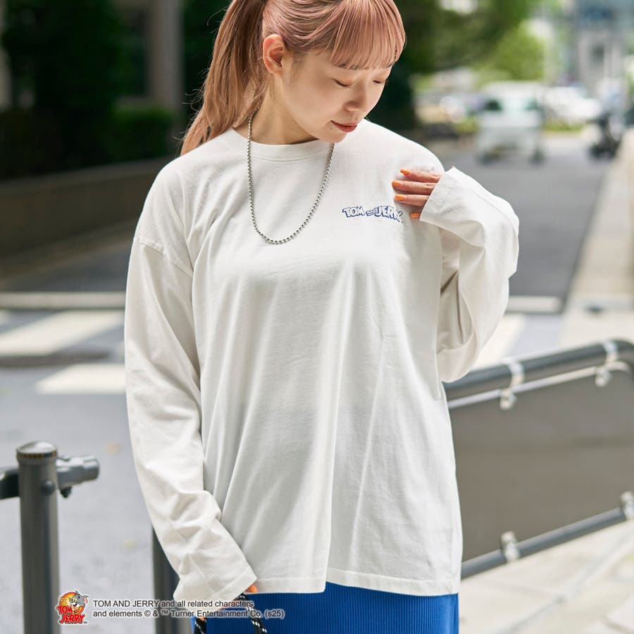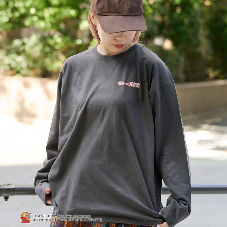 トムとジェリーの別注デザインによる、ユニセックスでも着用できるゆったりサイズのロングTシャツ。