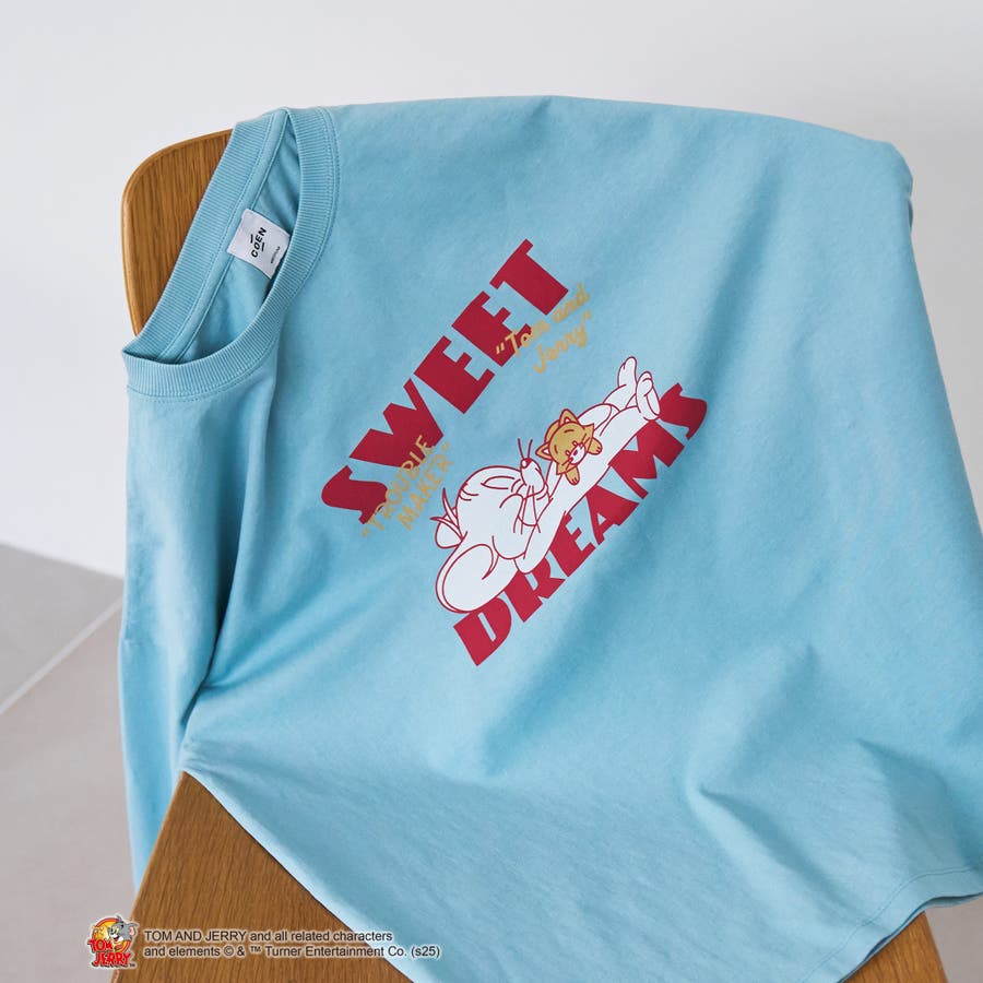 プリントは2パターン展開で、ジェリーが寝ている姿をあしらった愛らしいデザインと、フロントにワンポイント・バックに大きなロゴとトムとジェリーをプリントしたデザインをご用意。