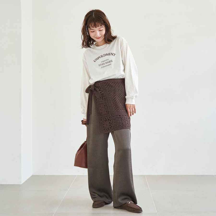 異素材の組み合わせが、コーディネートに立体感を与えてくれます。