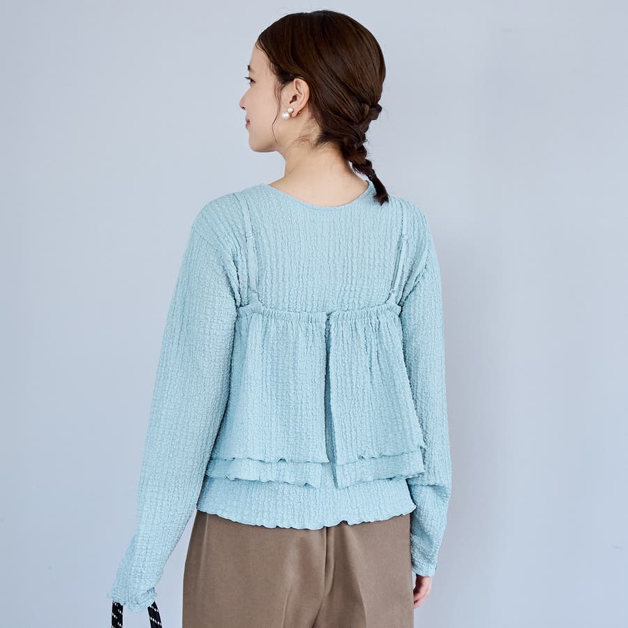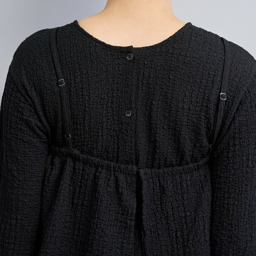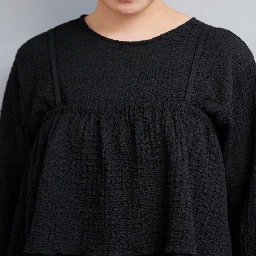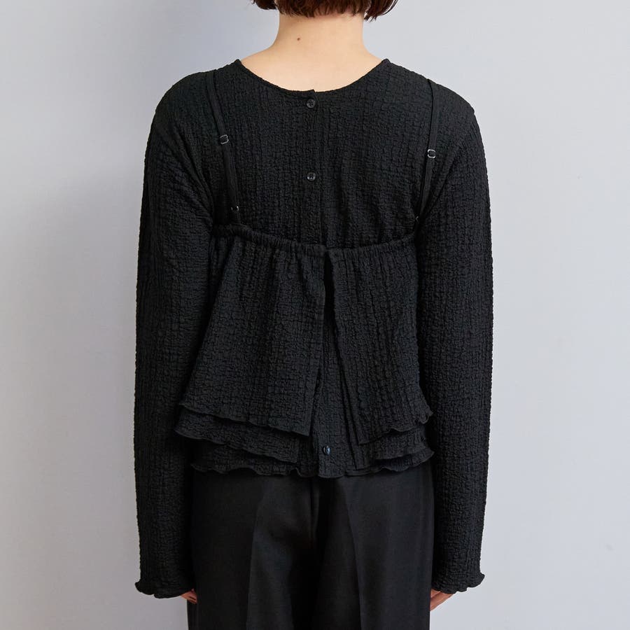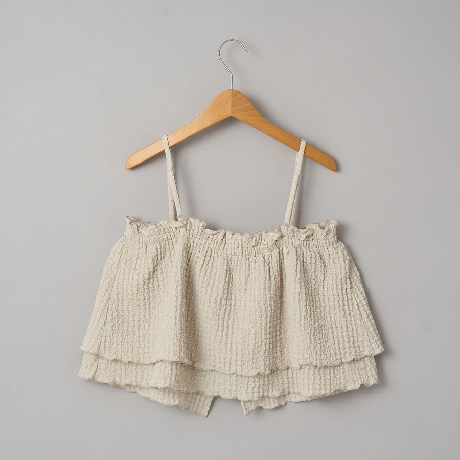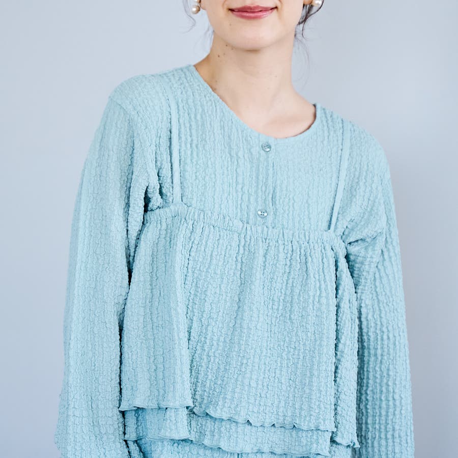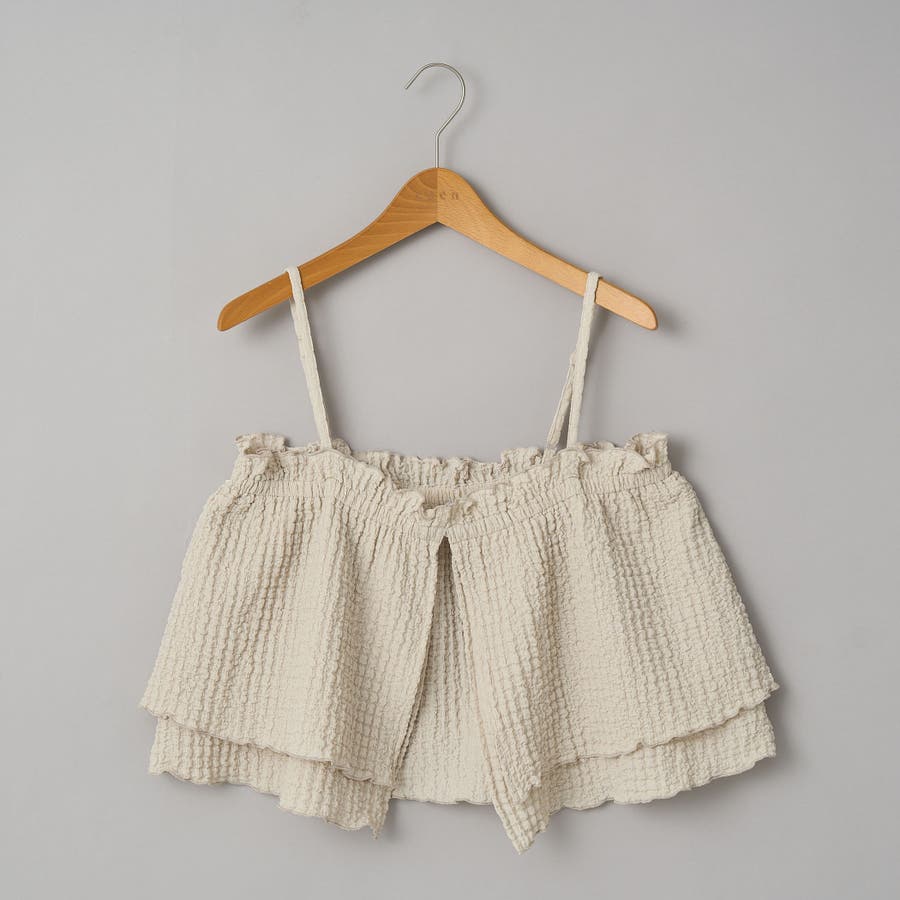 ポコポコとした素材感が可愛らしい、キャミソールタイプのビスチェとカーディガンのマルチWAYセット。