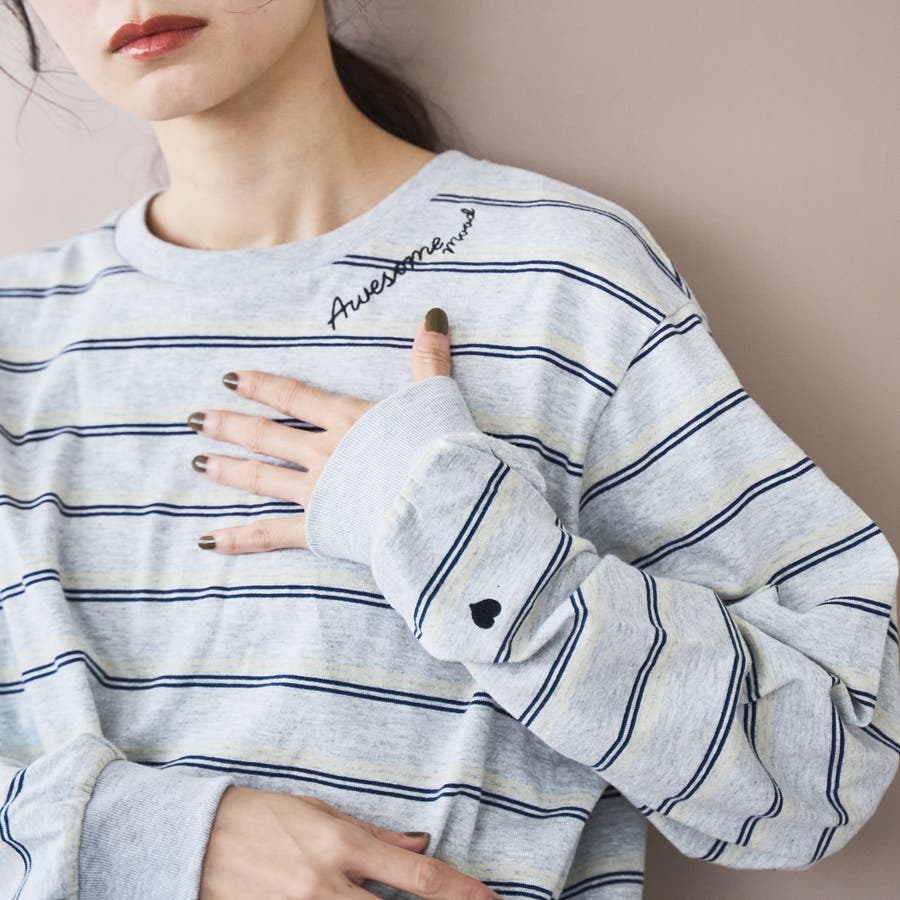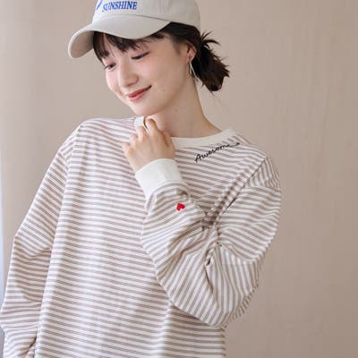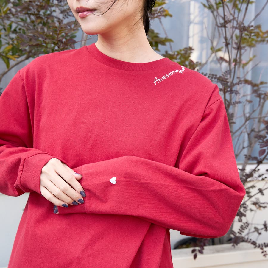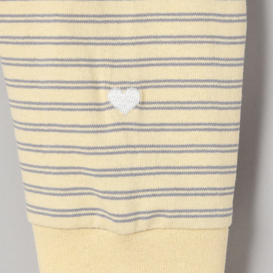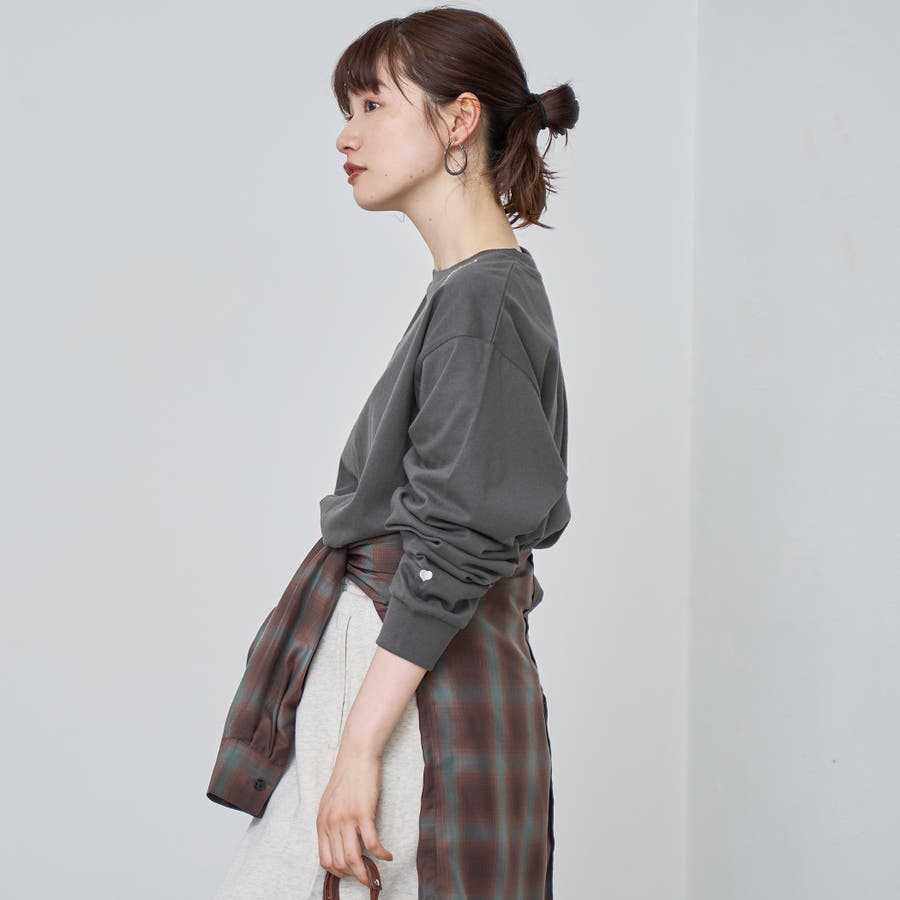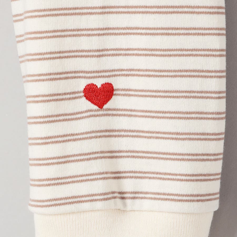 袖口のハートモチーフと襟ぐりのワンポイントロゴがアクセントになったロンT。