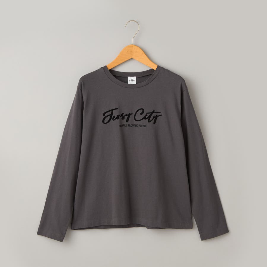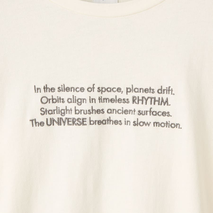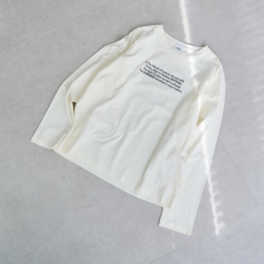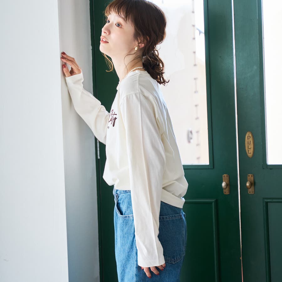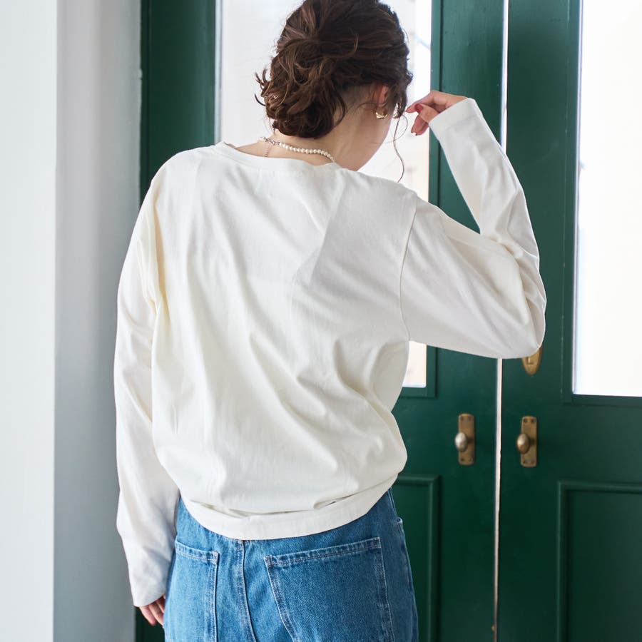 コンパクトなシルエットに、秋らしい刺繍とフロッキープリントを施したベーシックなロンT。