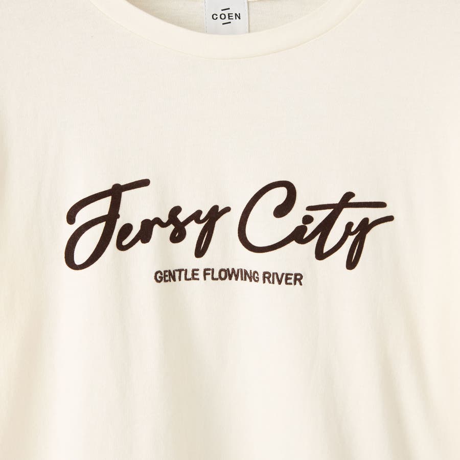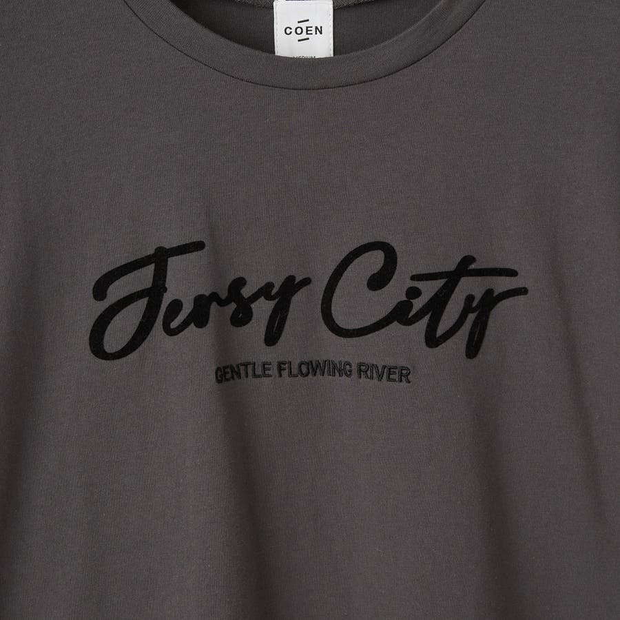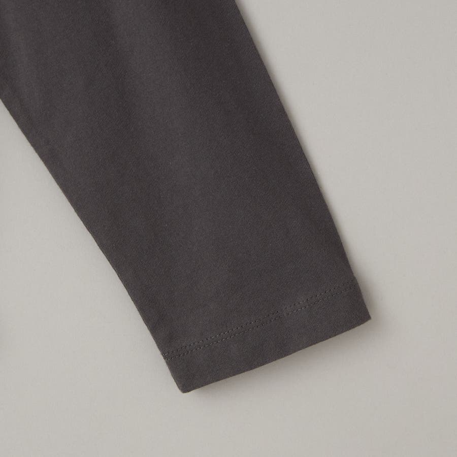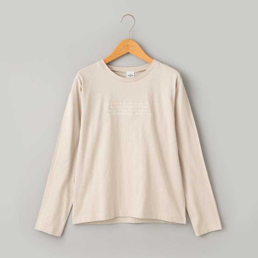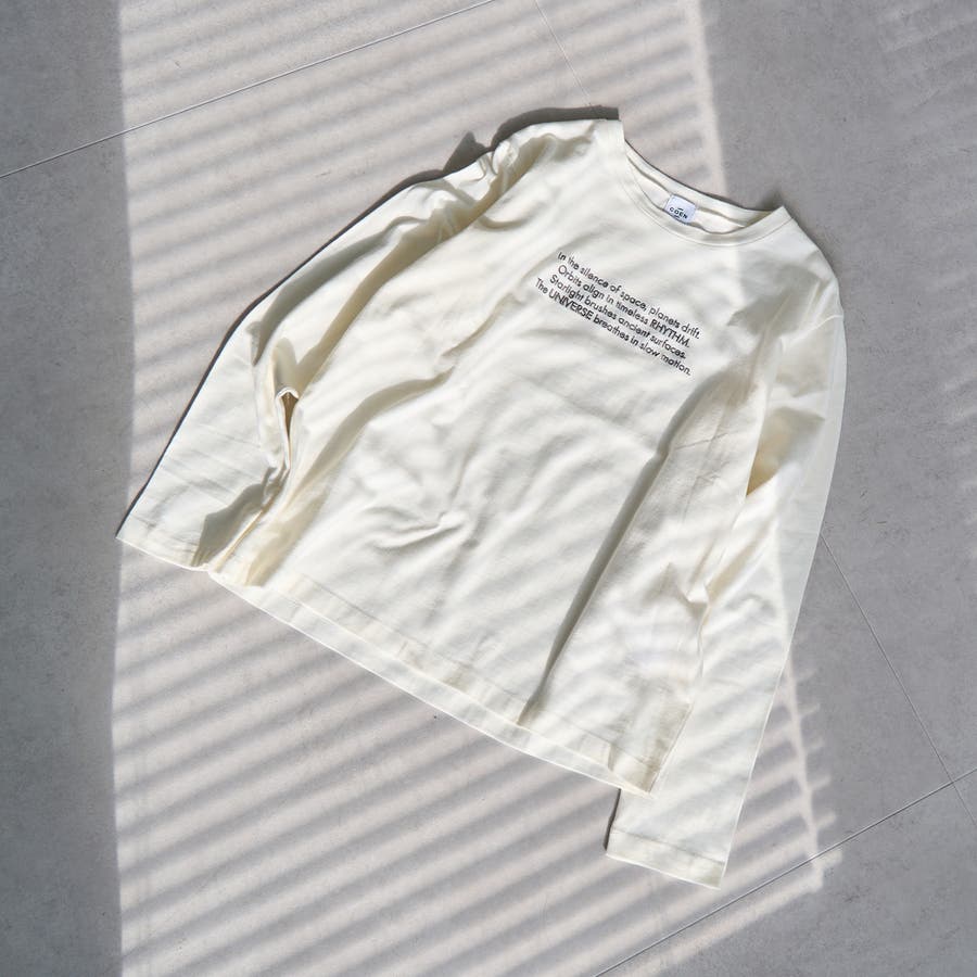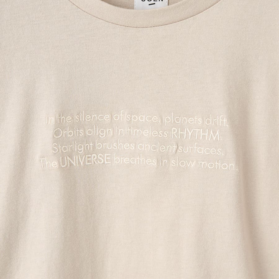コンパクトなシルエットに、秋らしい刺繍とフロッキープリントを施したベーシックなロンT。