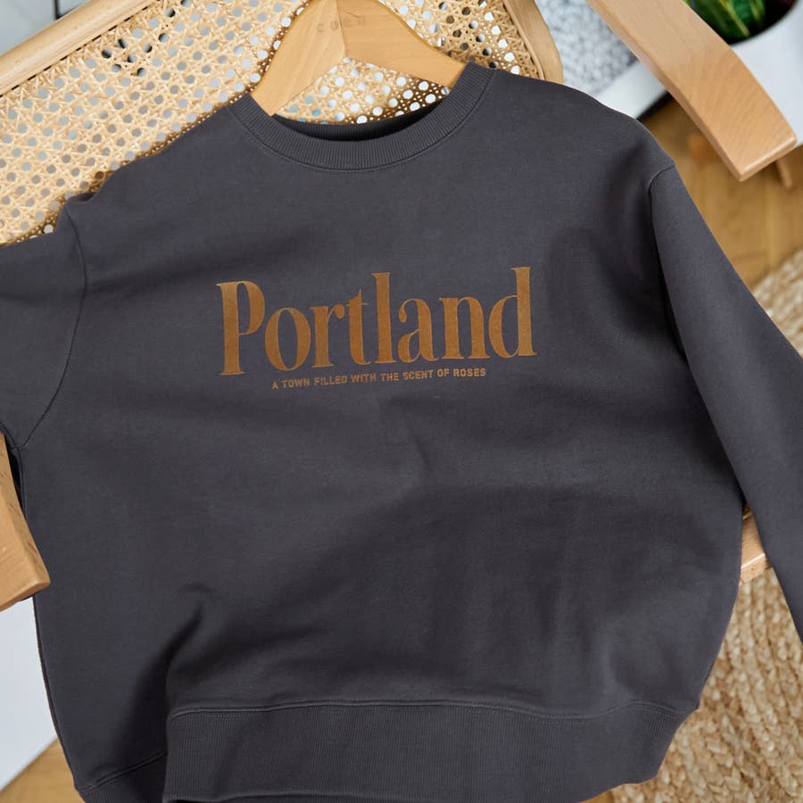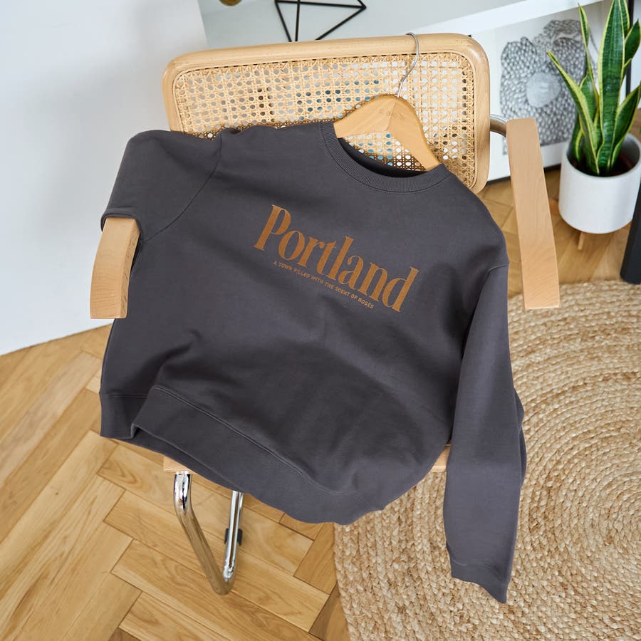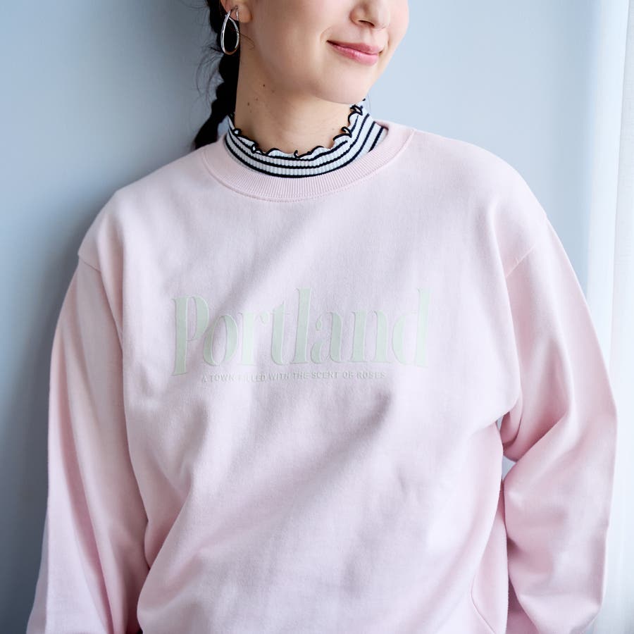 前身頃のフロッキーロゴが目を惹く、コンパクトなサイズ感の裏毛プルオーバー。