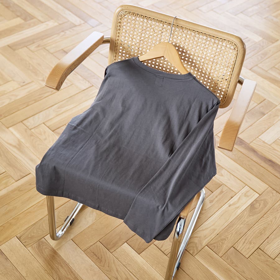 ほどよい厚みでなめらかな肌ざわりの、高品質なコットン100%天竺素材を使用しており、着心地の良さも魅力。