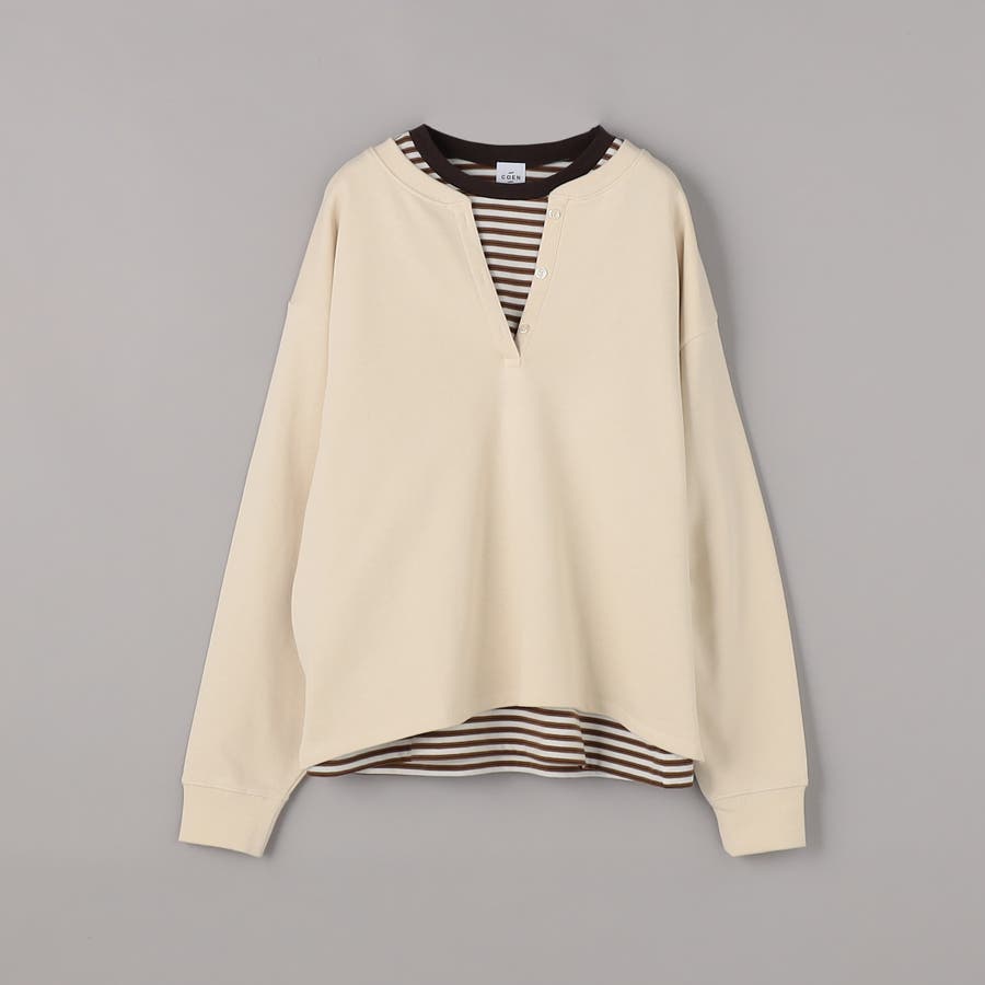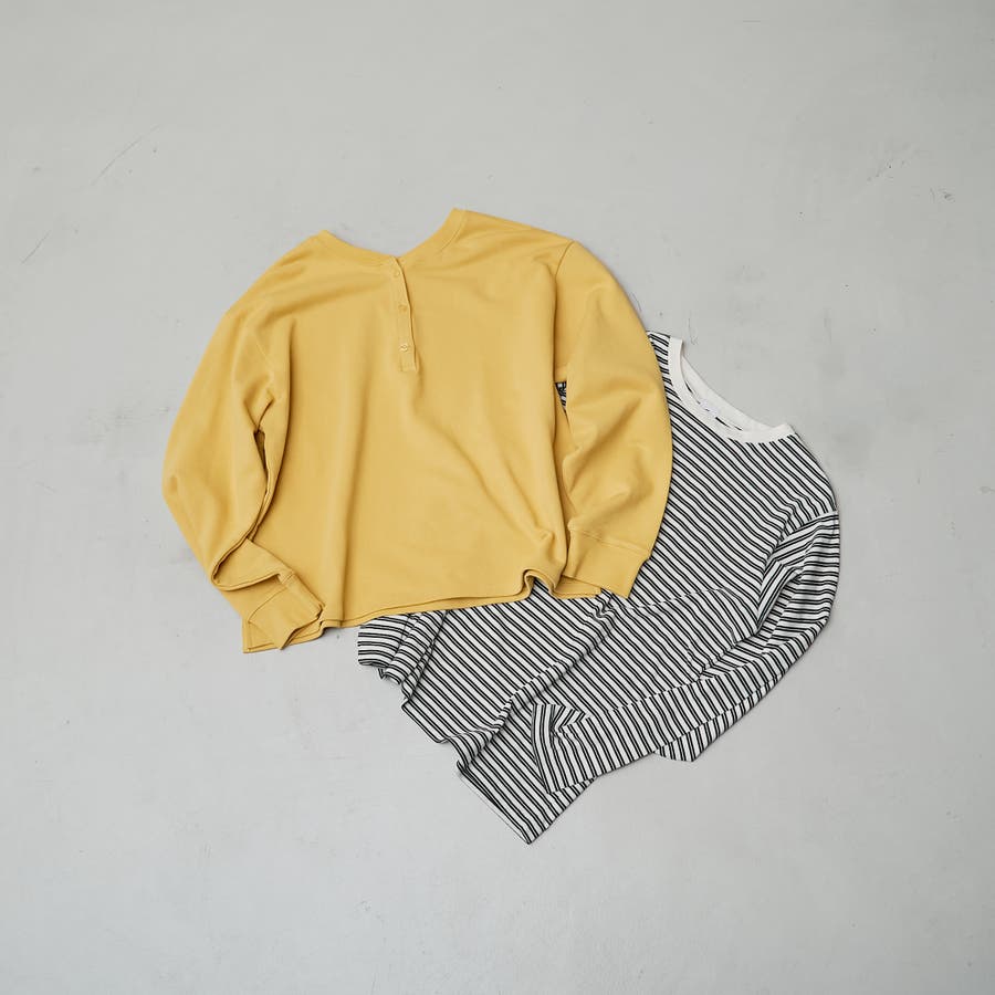 トレンドのヘンリーネックトップスとボーダーのロンTがセットになったアイテムです。それぞれ単体でも、お持ちのアイテムとのレイヤードも楽しめる万能アイテムです◎