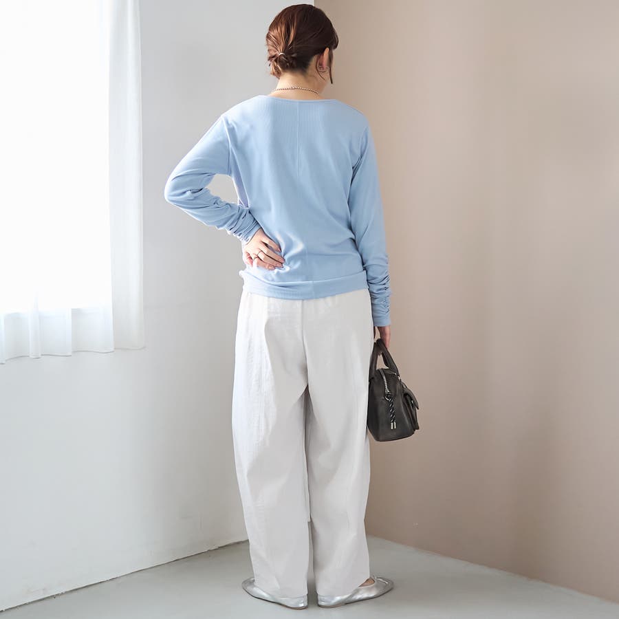 カジュアルなデニムパンツから、コクーンスカートなどのキレイ目アイテムまで、ボトムを選ばずご着用いただけます。