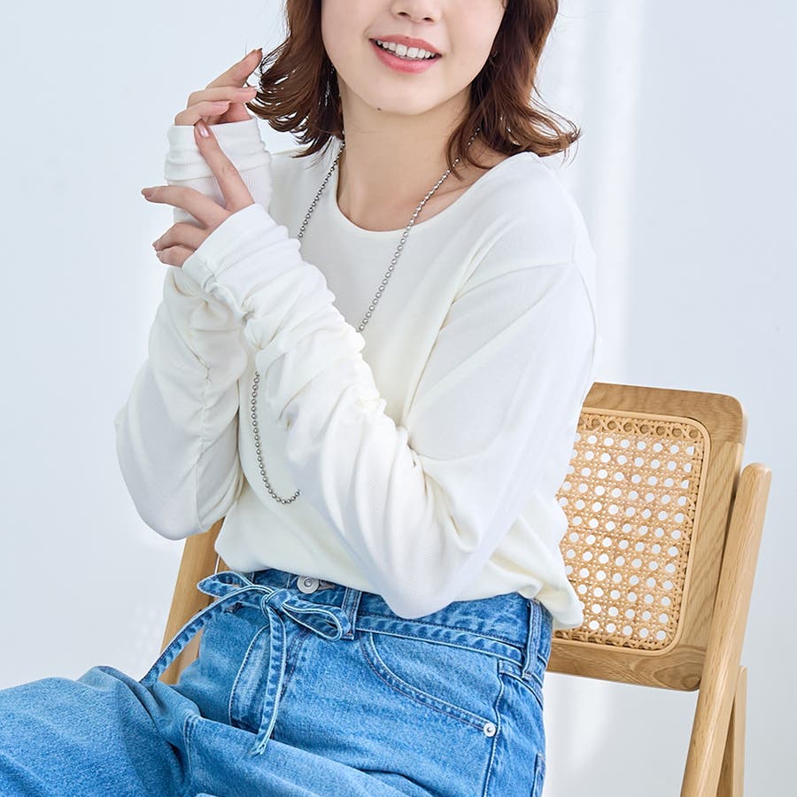 単体での着用はもちろん、今時期はニットやスウェットの袖口からくしゅっとしたデザインをチラ見せするスタイルがおすすめです◎