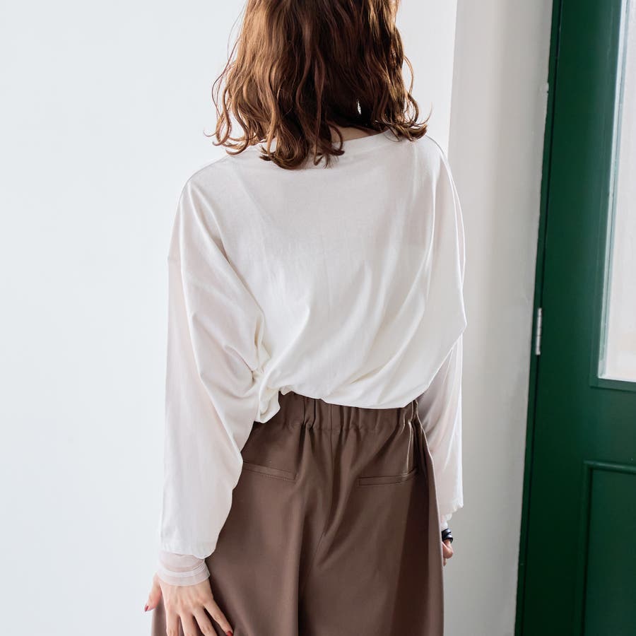 袖のチュール切り替えが目を惹く使いやすいロンT。