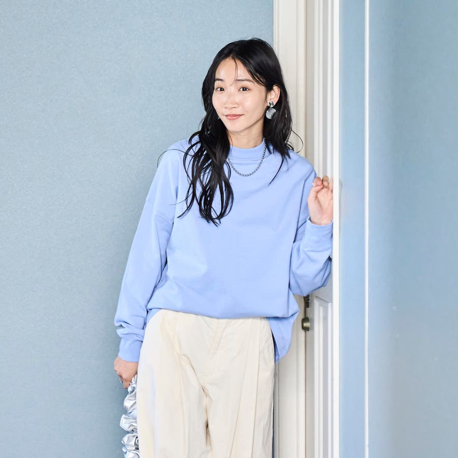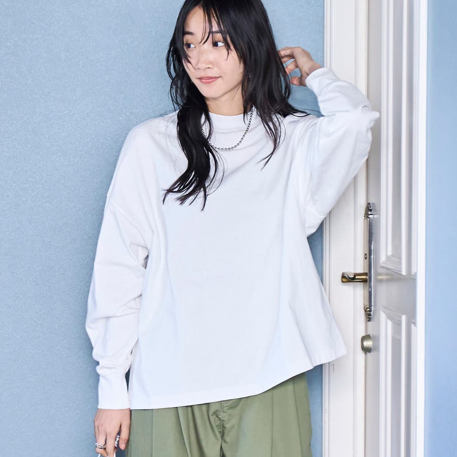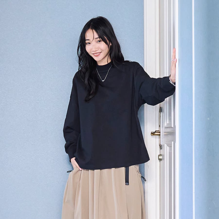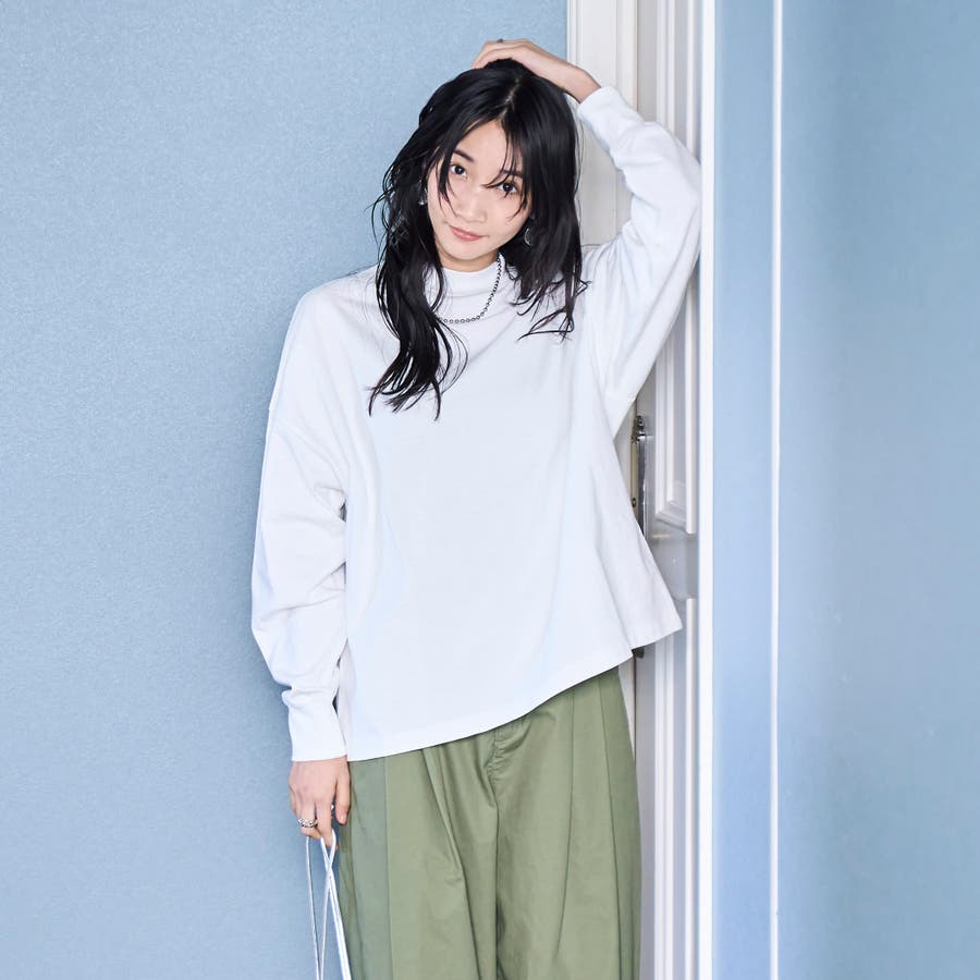さらっとしたUSAコットン素材に、小さめのハイネックが程よいトレンド感と大人な雰囲気をプラス。