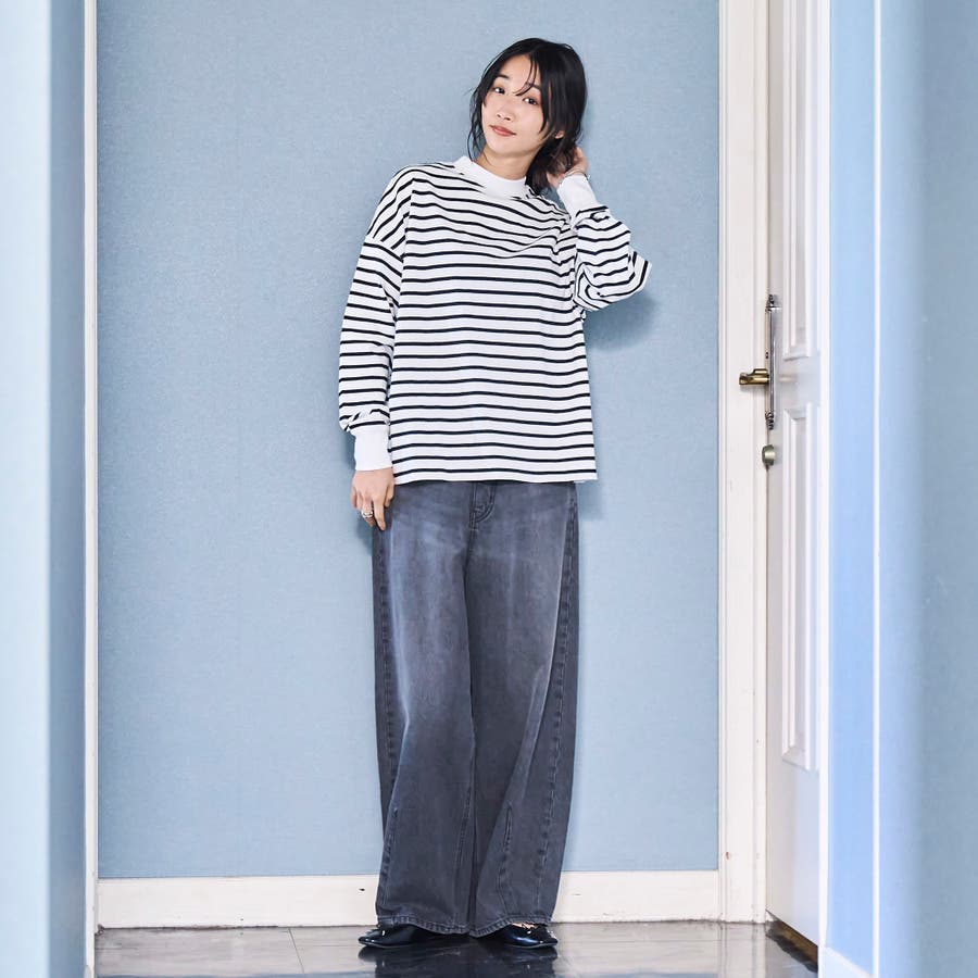 袖はボリューム感を出し、身頃はゆったりでトレンド感のあるシルエットです。