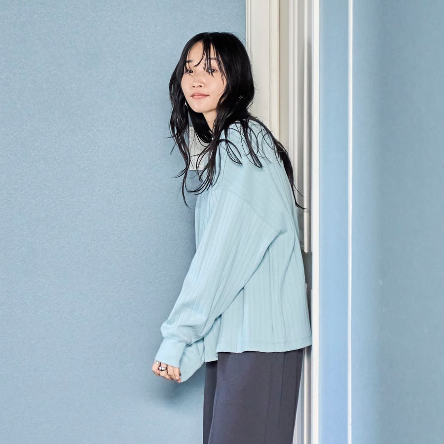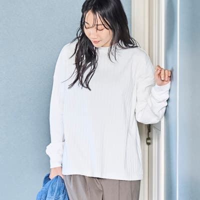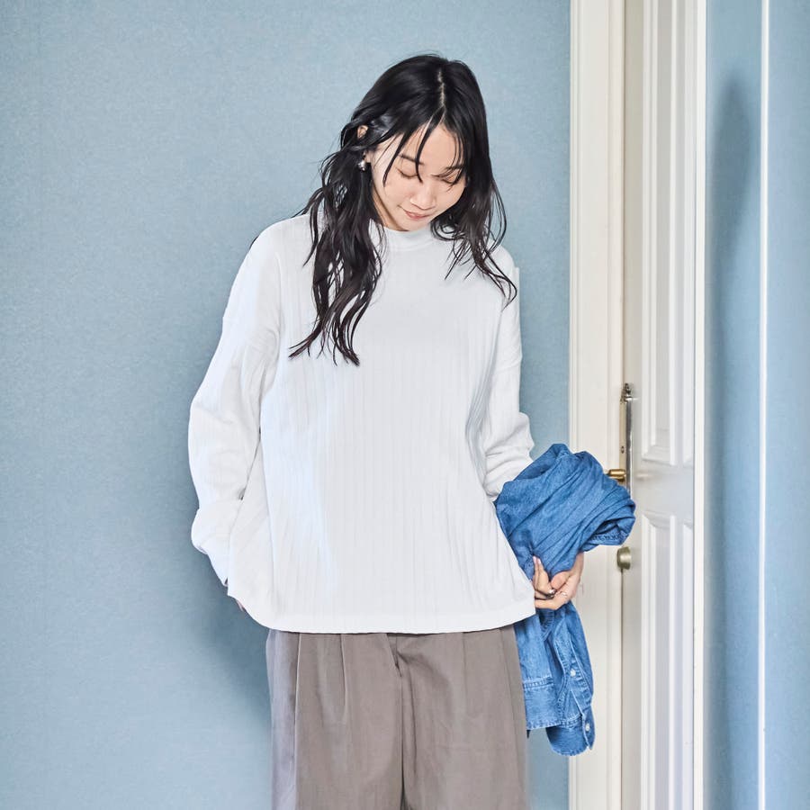 大人気リピTと同型ながら、大人のスタイリングにも溶け込みやすいリブ編みのロンT。