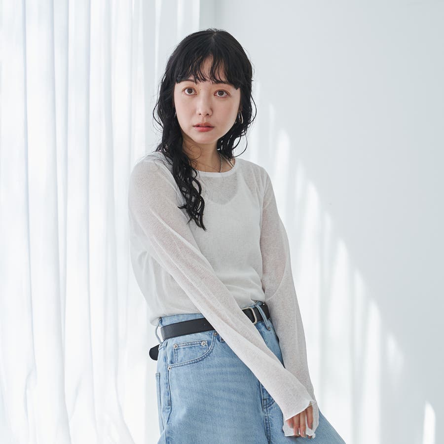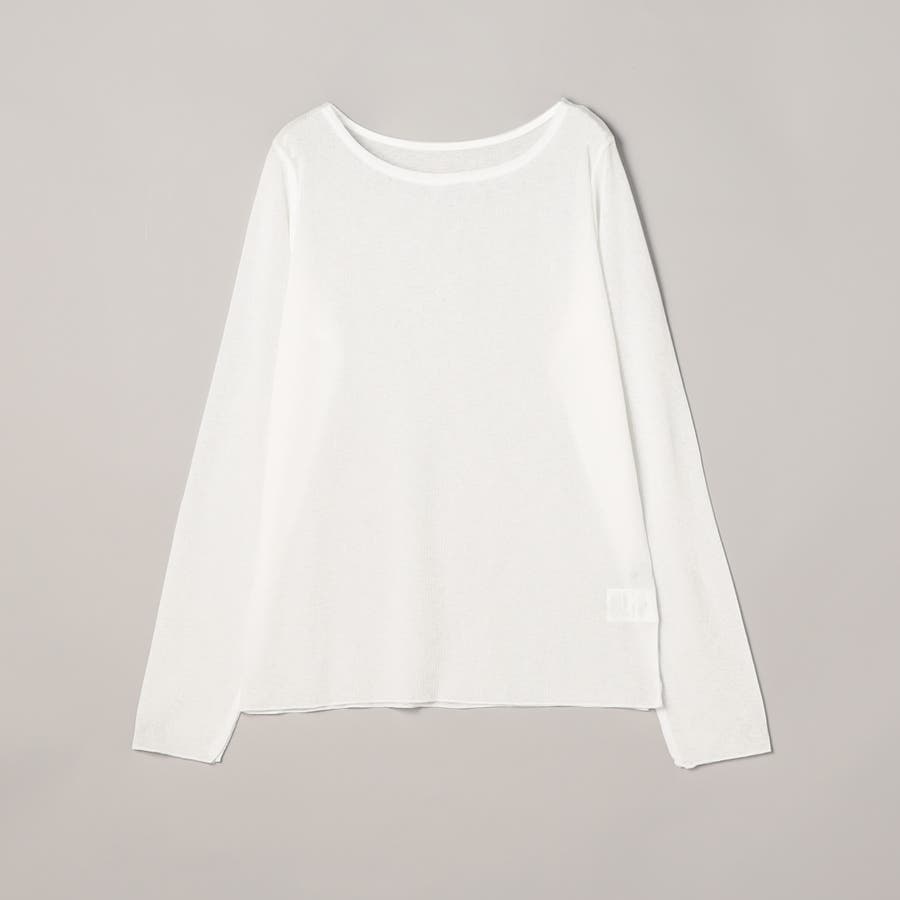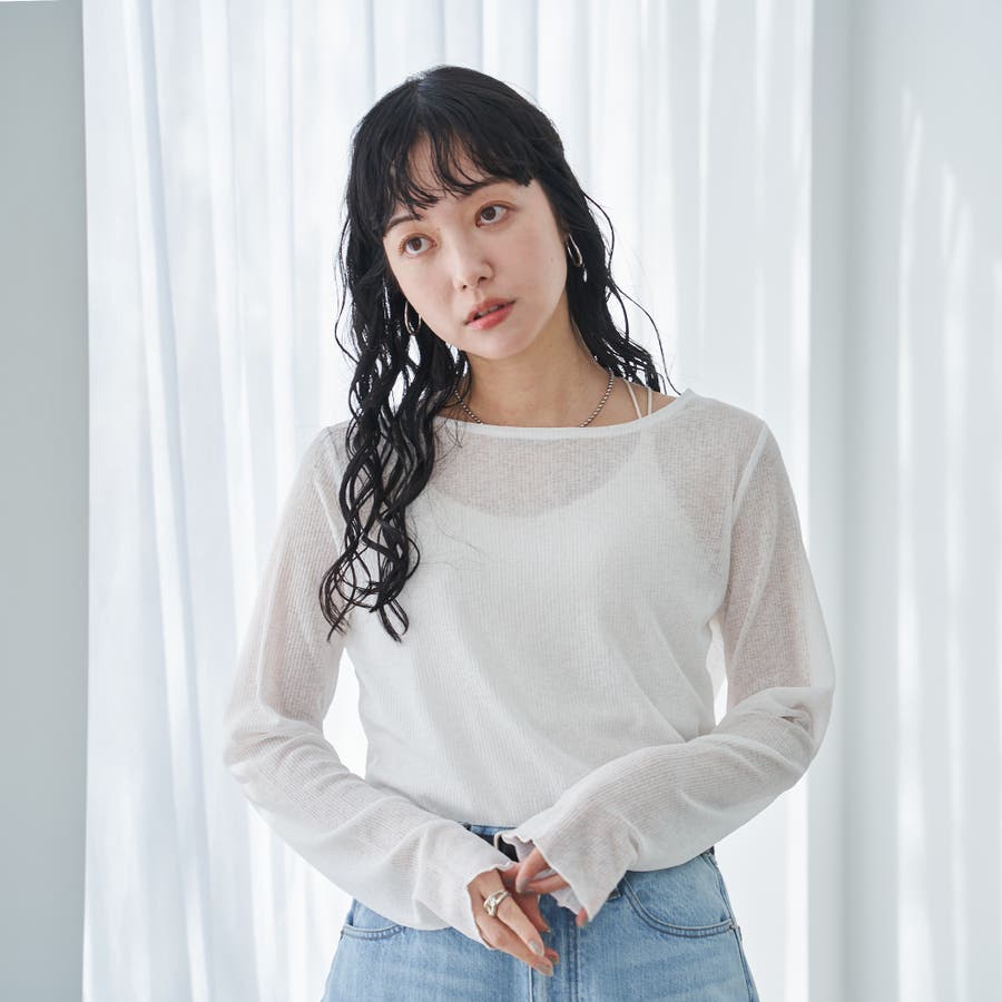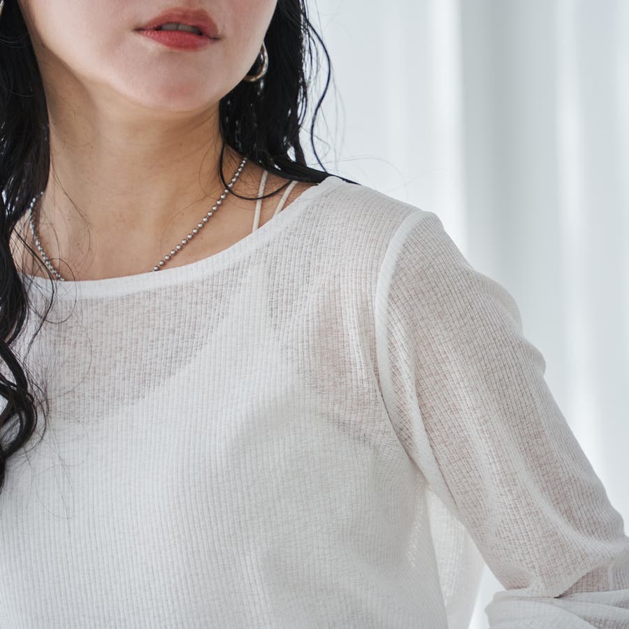 シンプルなデザインながらも、透け感を活かしたレイヤードスタイルにも最適。