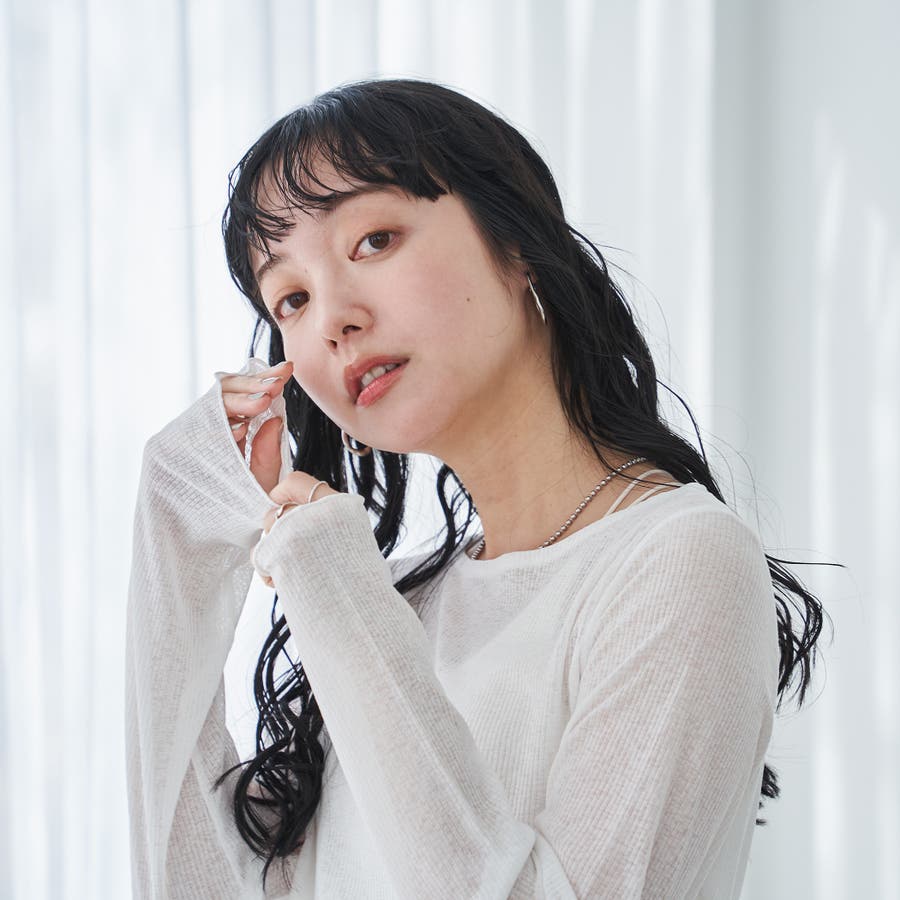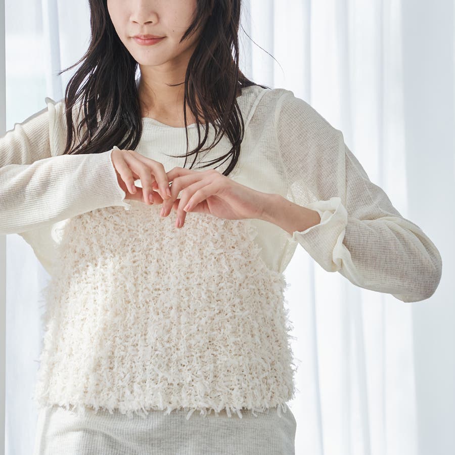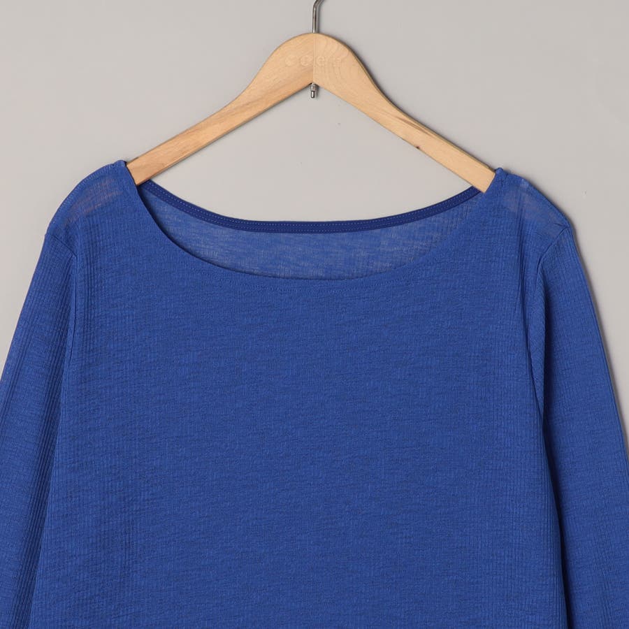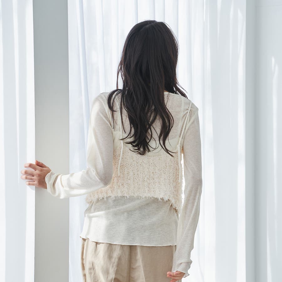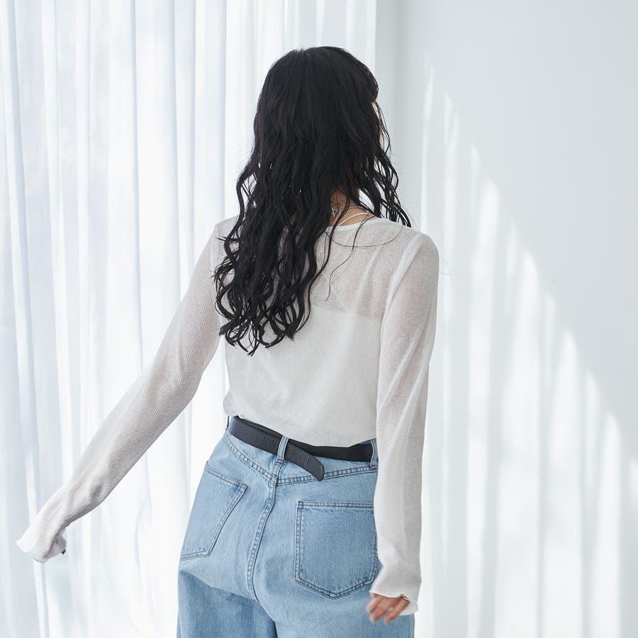 シンプルなデザインながらも、透け感を活かしたレイヤードスタイルにも最適。