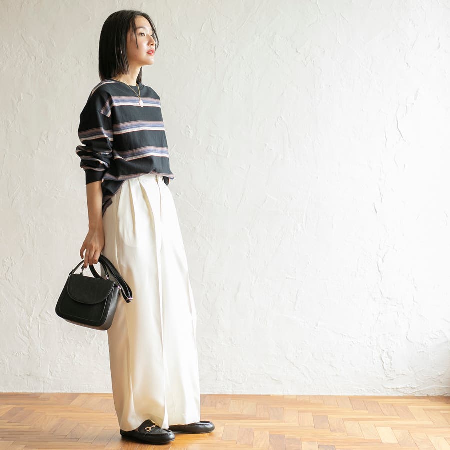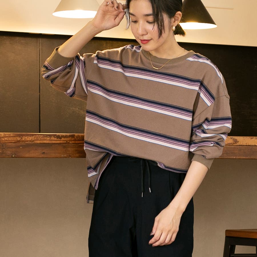 投稿日:2024.02.27変わった色合いのベージュのボーダーでお洒落です。モデルさんのコーディネートを真似てゆるっとした黒ボトムを合わせると、周りからの評判も良好でした。
