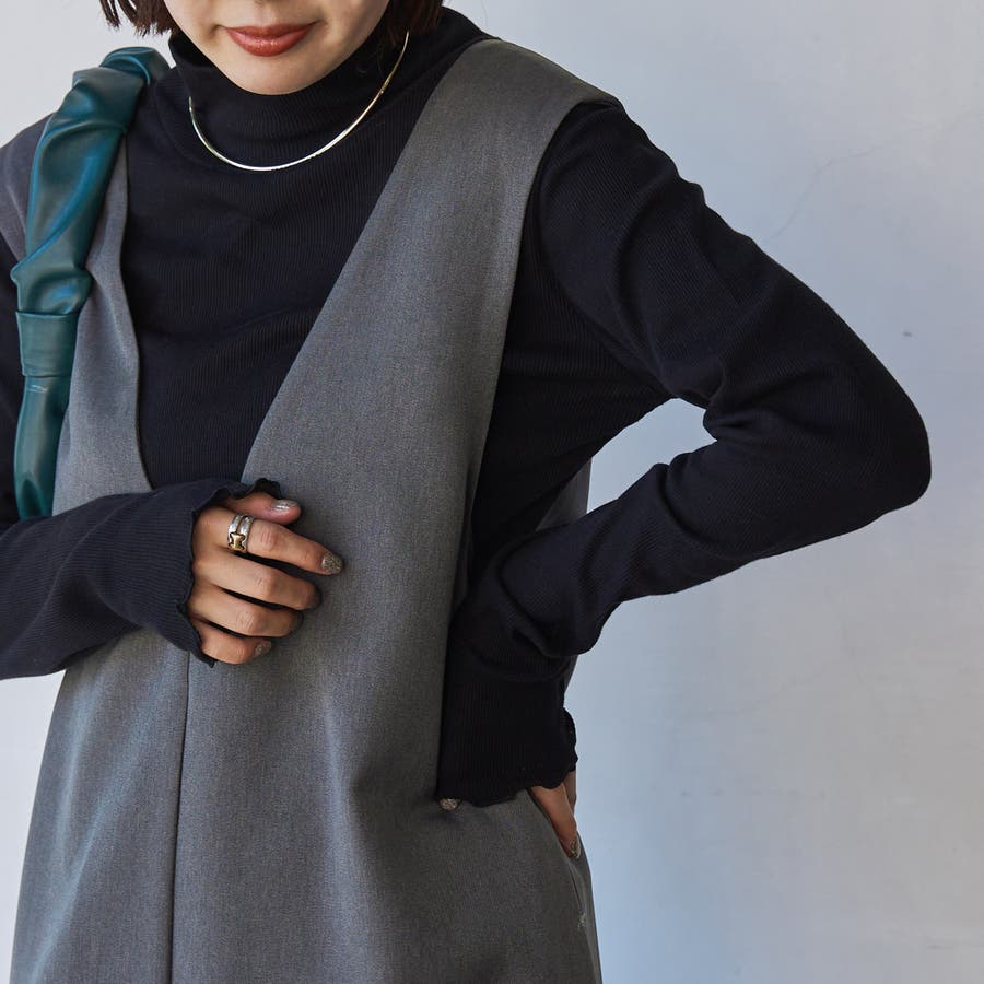 またスウェットやシャツ、カーディガンのインナーに、ジレやベストのインナーとしてなど、様々なレイヤードスタイルに使えるアイテムです。
