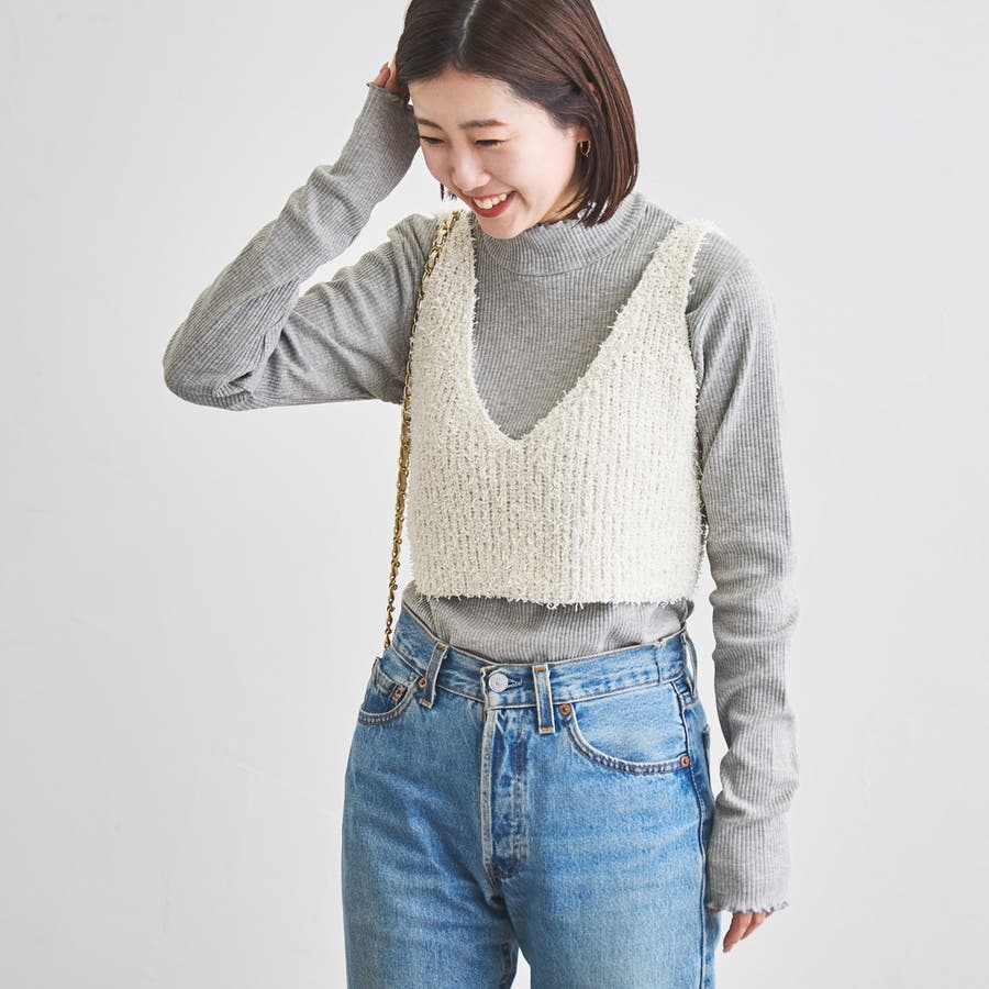 またスウェットやシャツ、カーディガンのインナーに、ジレやベストのインナーとしてなど、様々なレイヤードスタイルに使えるアイテムです。首元や袖先から差し色を覗かせるコーディネートも◎。