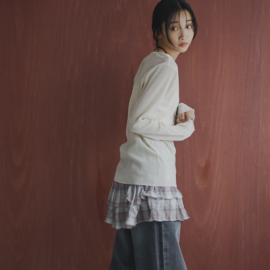 いつものロンTと差し替えるだけで今っぽい雰囲気のスタイリングに。