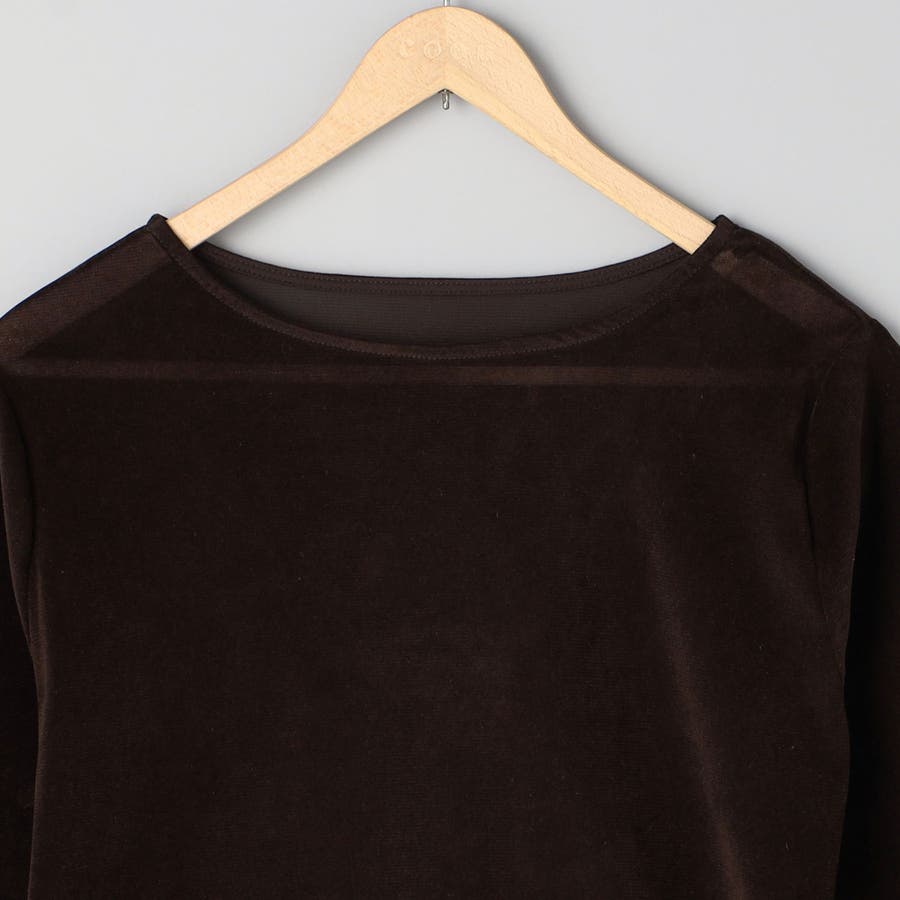 トレンド感のあるベロア素材のシンプルな長袖カットソー。