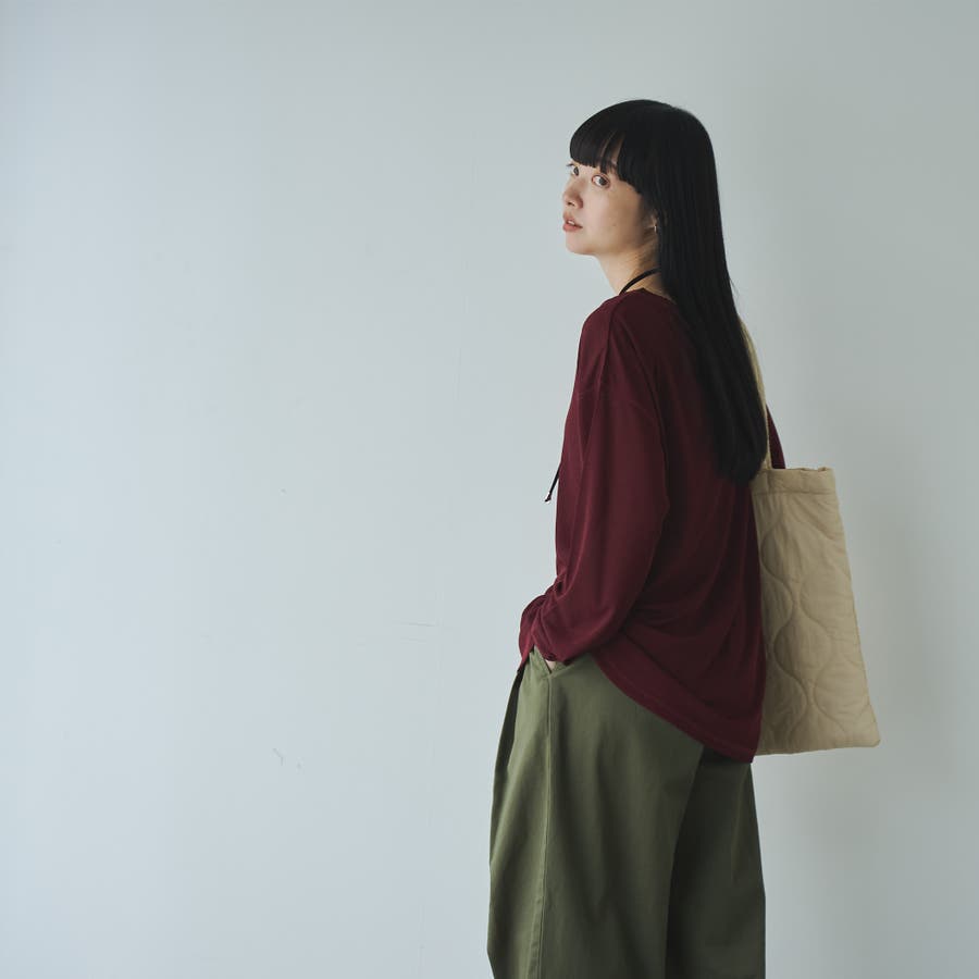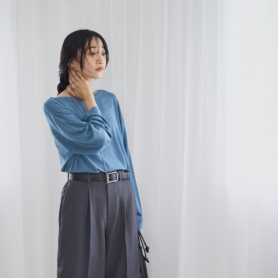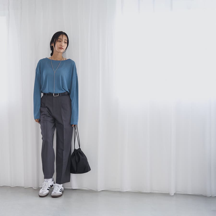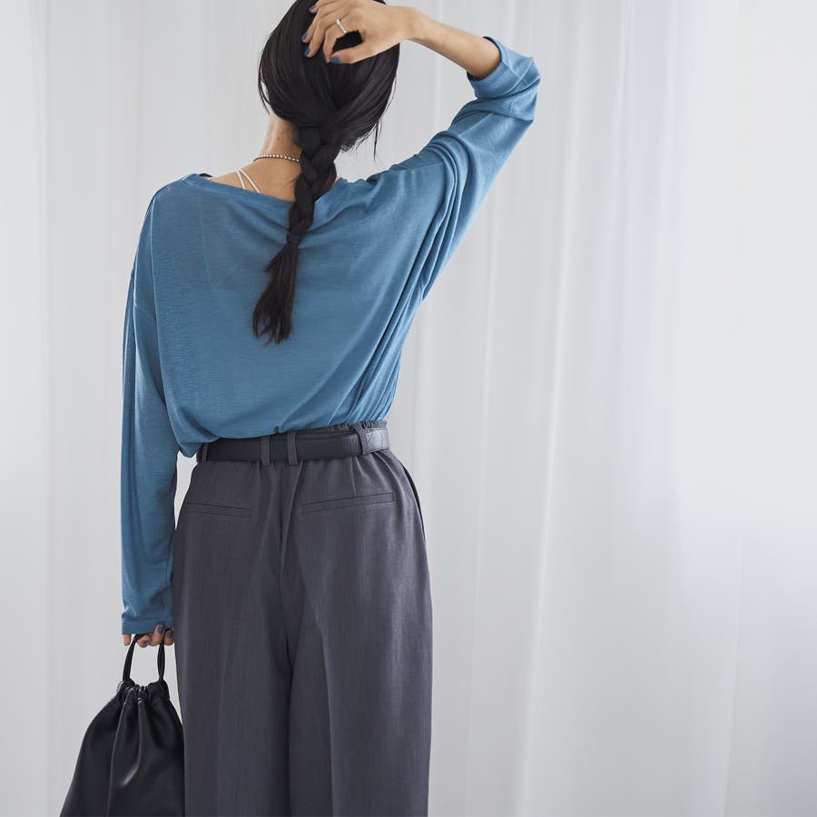 ネックラインは広めながらも生地を2重にすることで、デコルテまわりがルーズに見えないのも嬉しいポイントです。