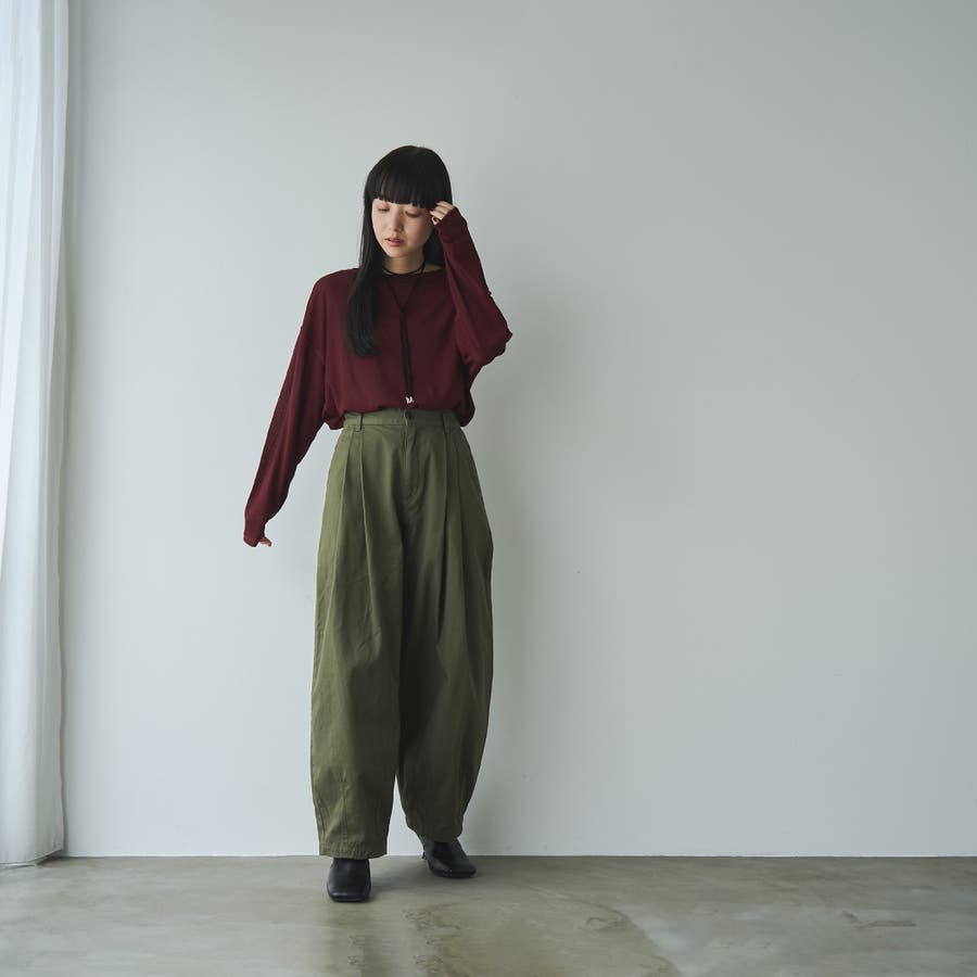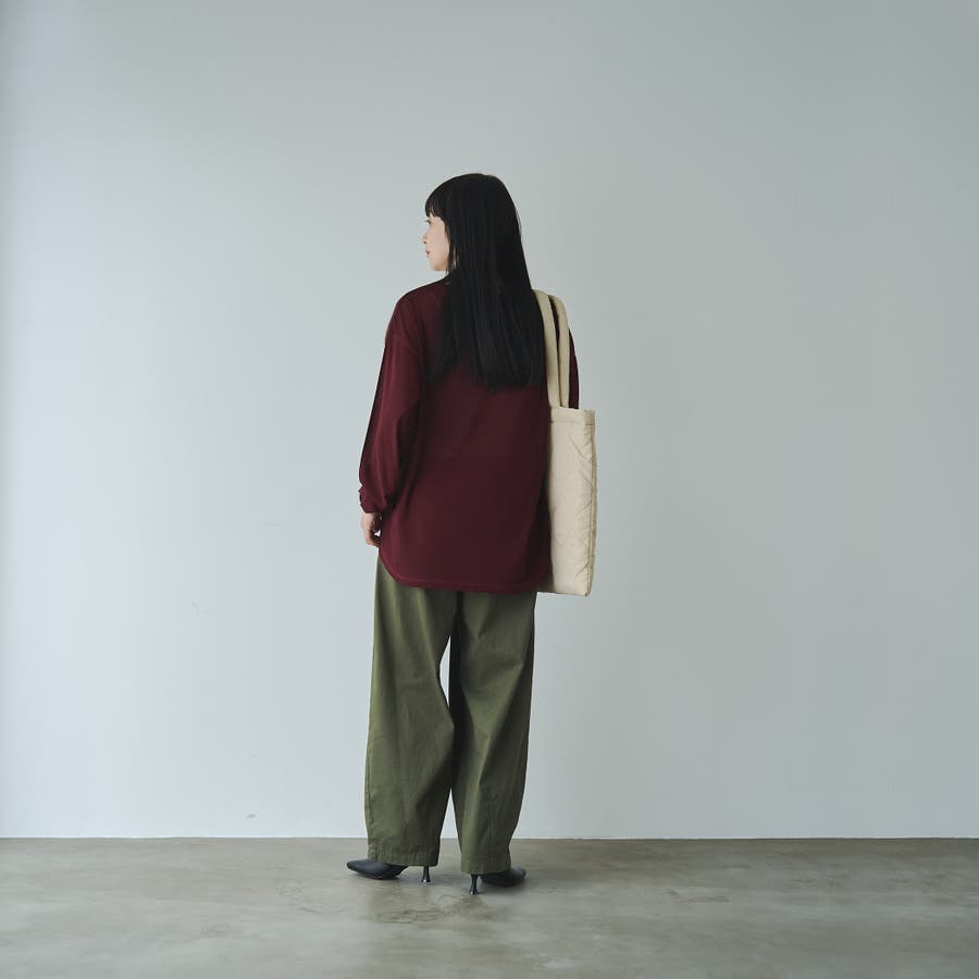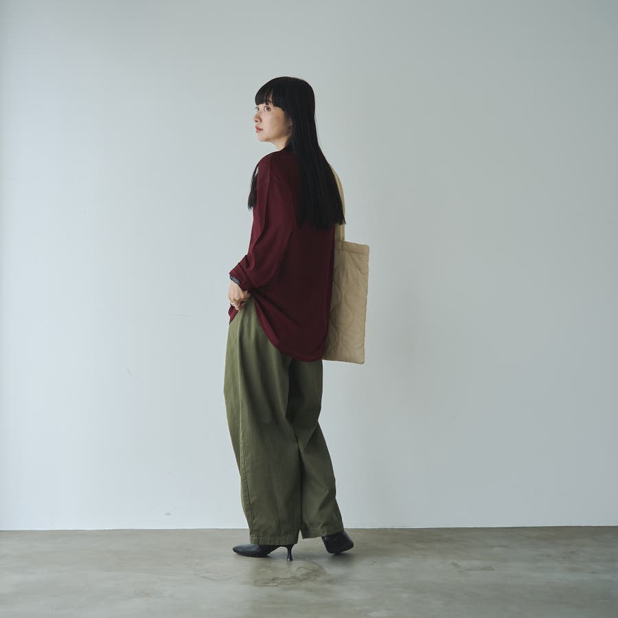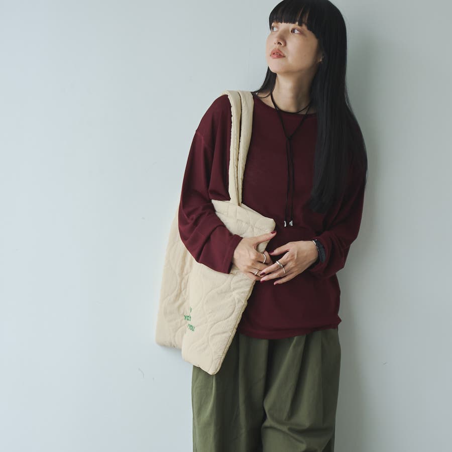 ネックラインは広めながらも生地を2重にすることで、デコルテまわりがルーズに見えないのも嬉しいポイントです。