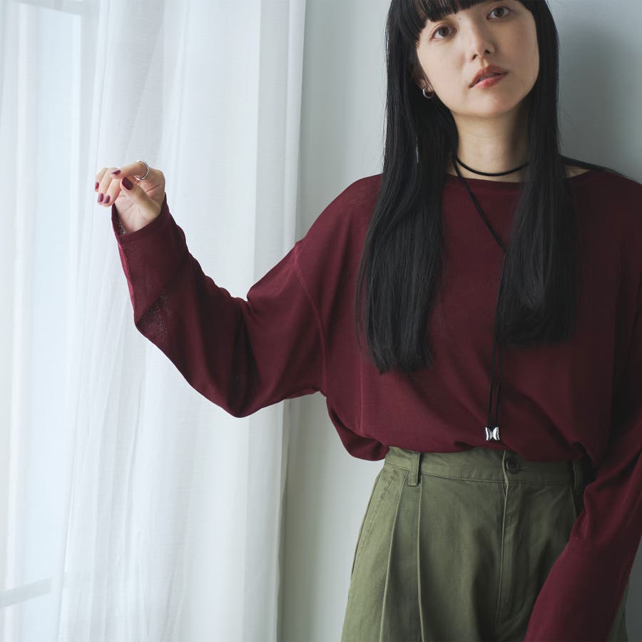 秋口に嬉しい仄かな透け感がレイヤード映えするシアートップス
