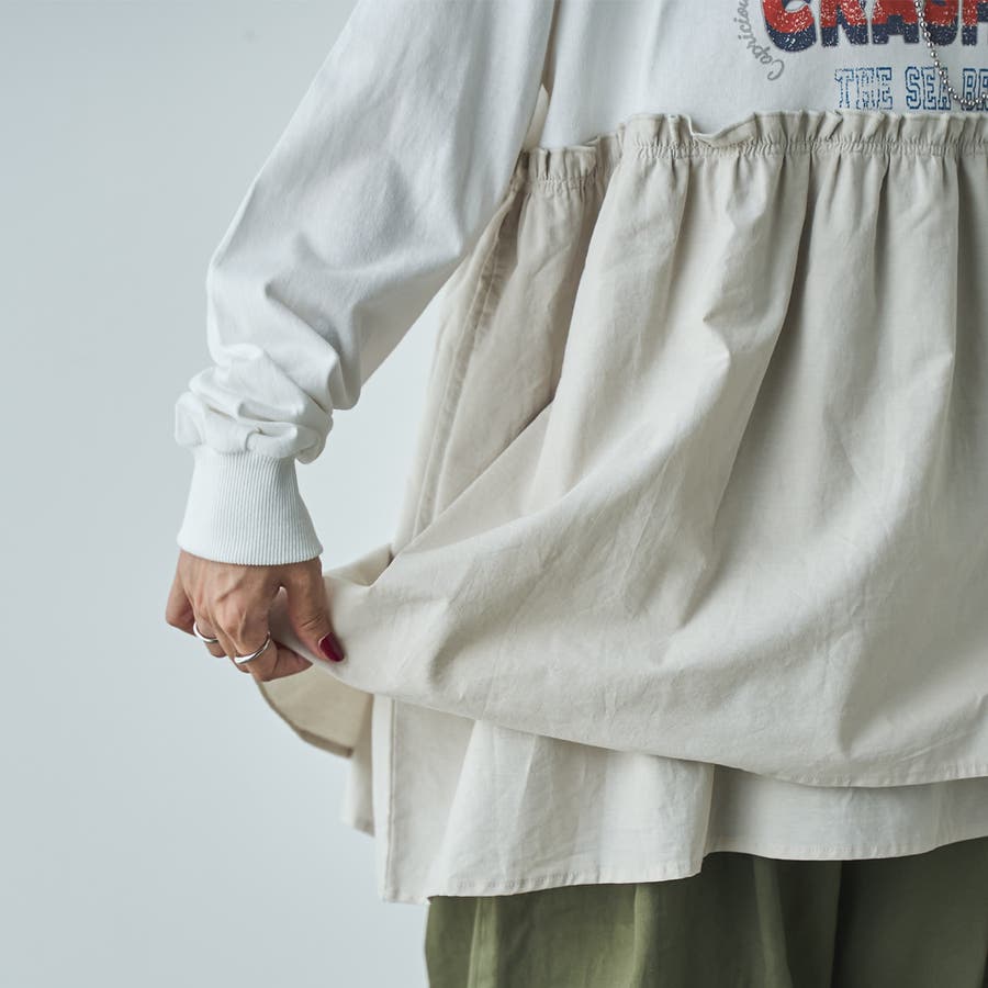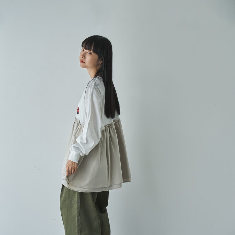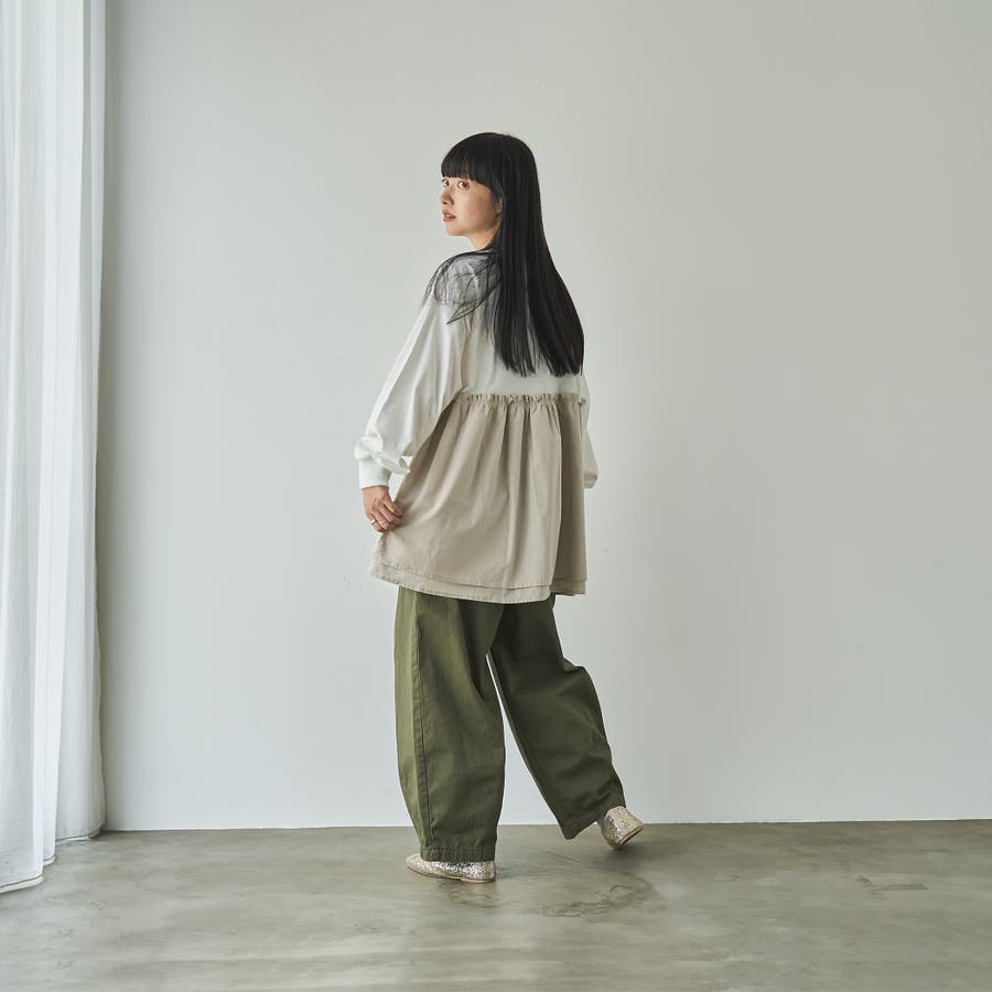 切り替えから下は布帛になっており、綺麗な広がりが出るのも特徴。