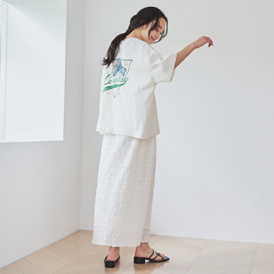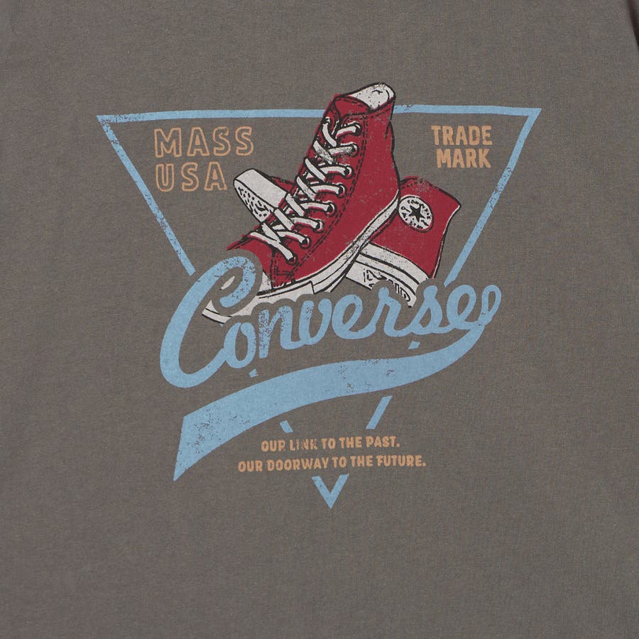 シューズモチーフのグラフィックがCONVERSEらしさを感じさせるTシャツ。