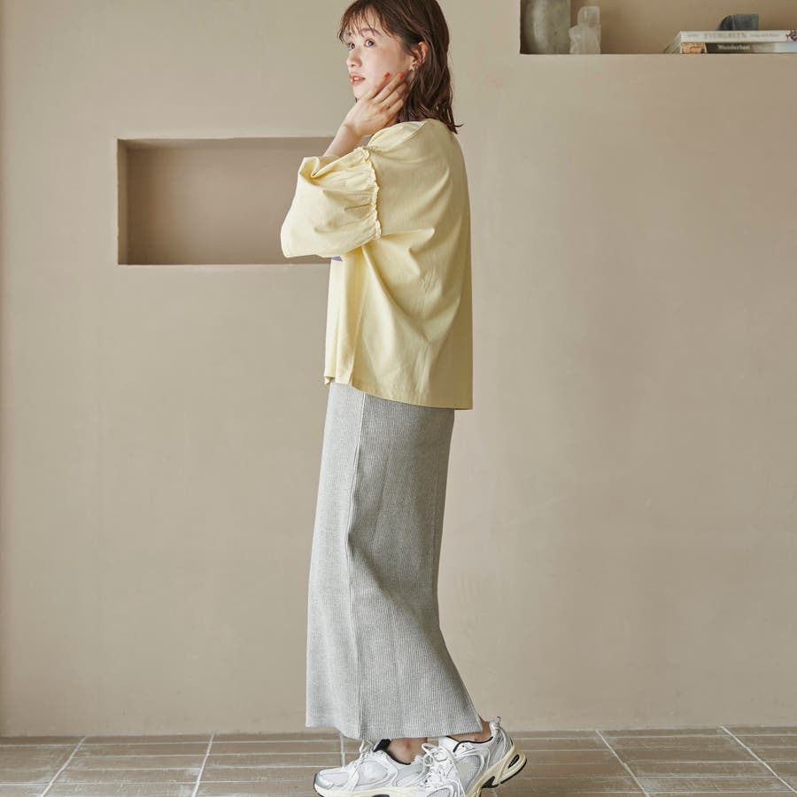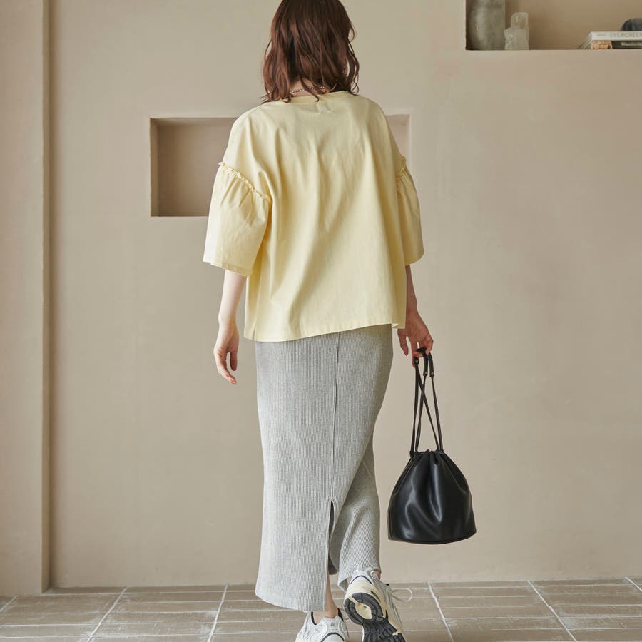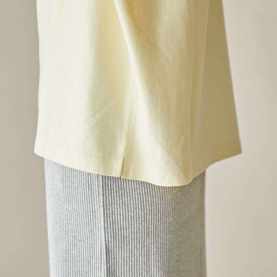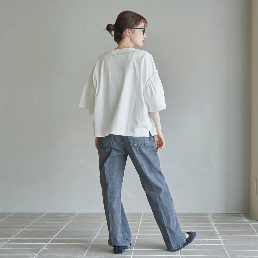 通年着られるコットン素材で、サテンパンツやデニムなど、どんなボトムとも好相性。