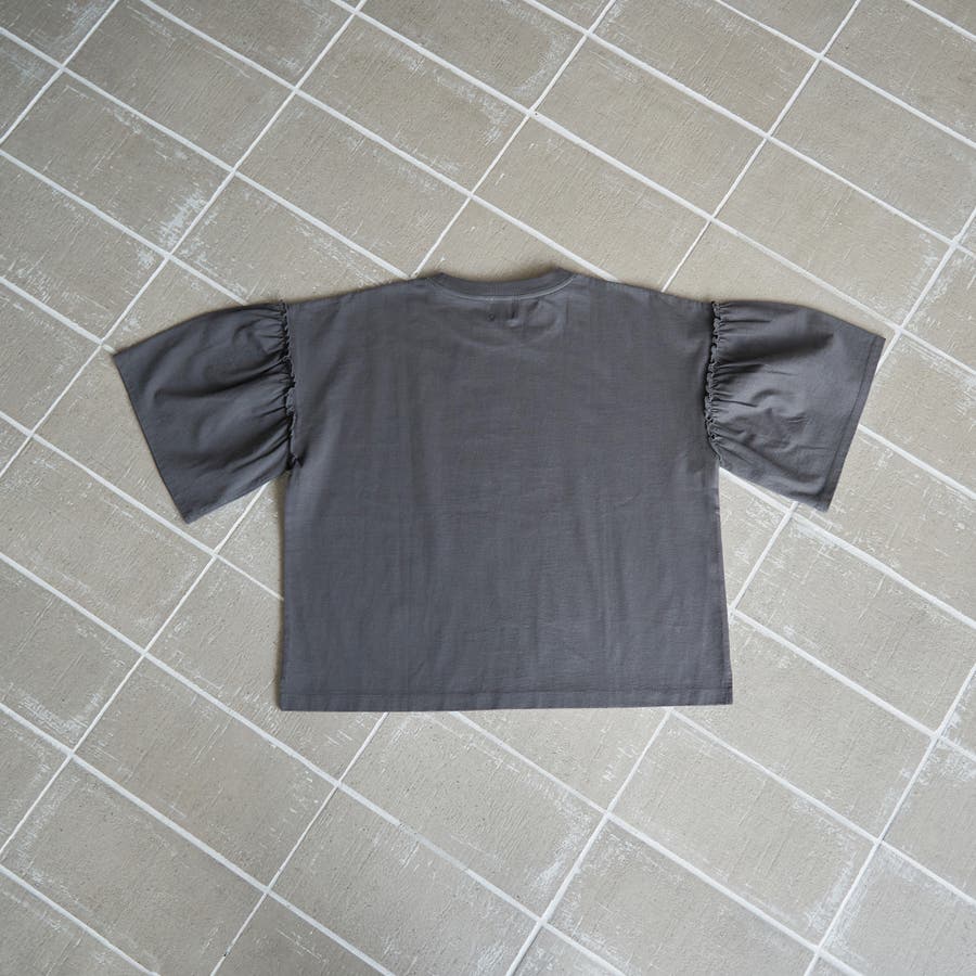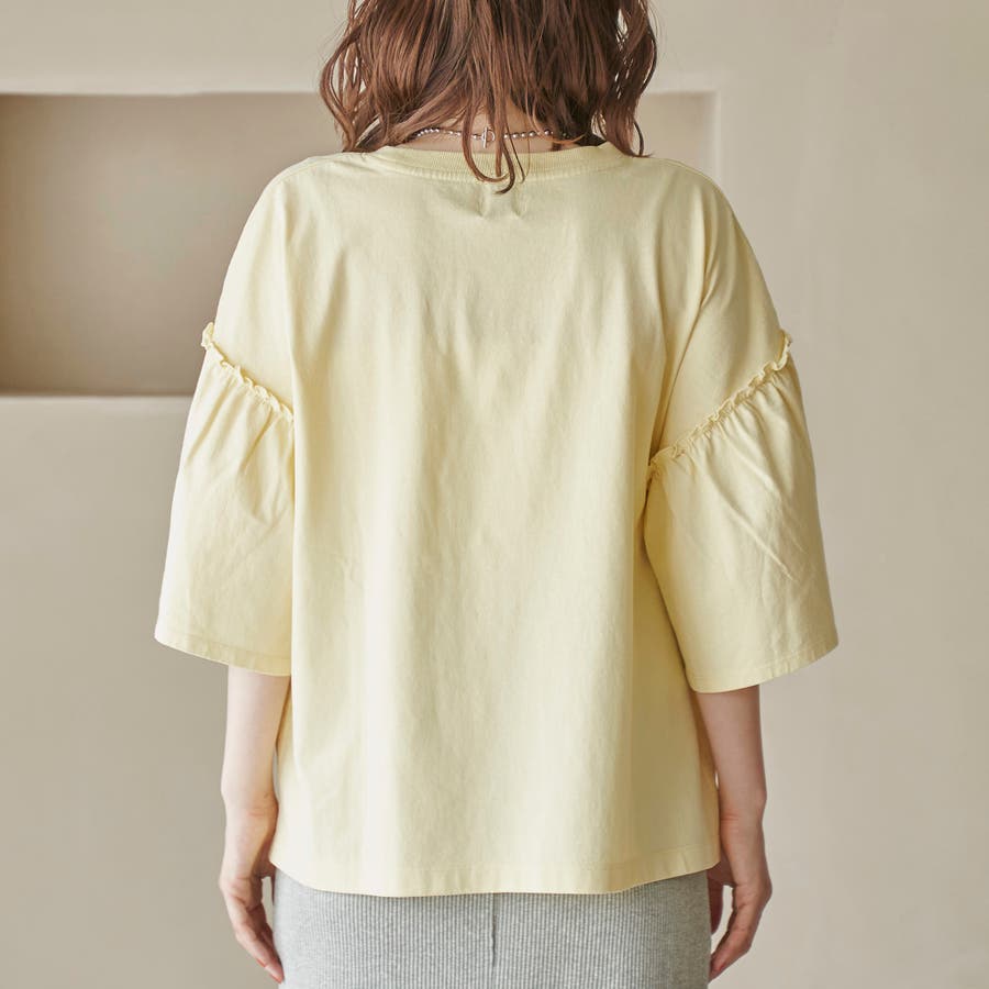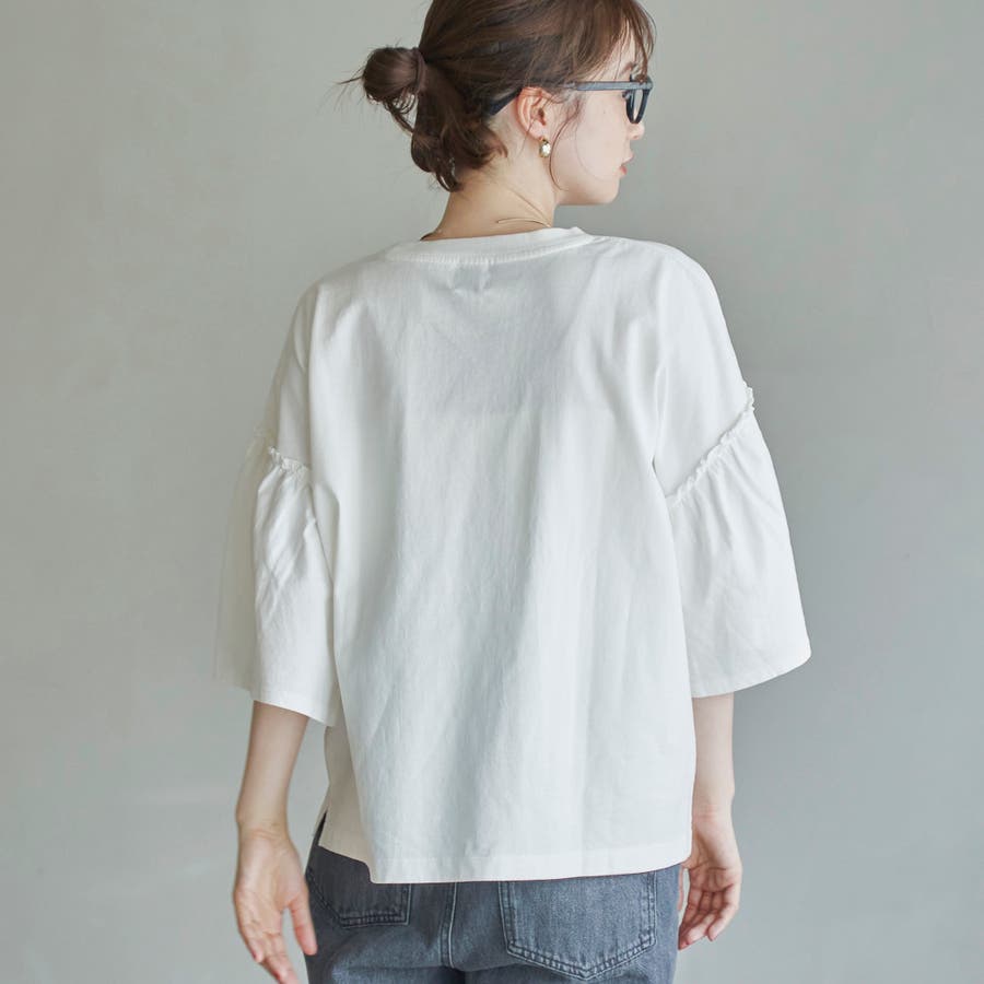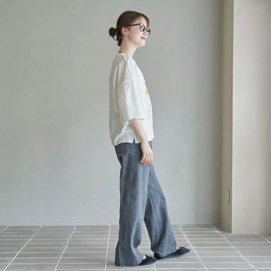 通年着られるコットン素材で、サテンパンツやデニムなど、どんなボトムとも好相性。