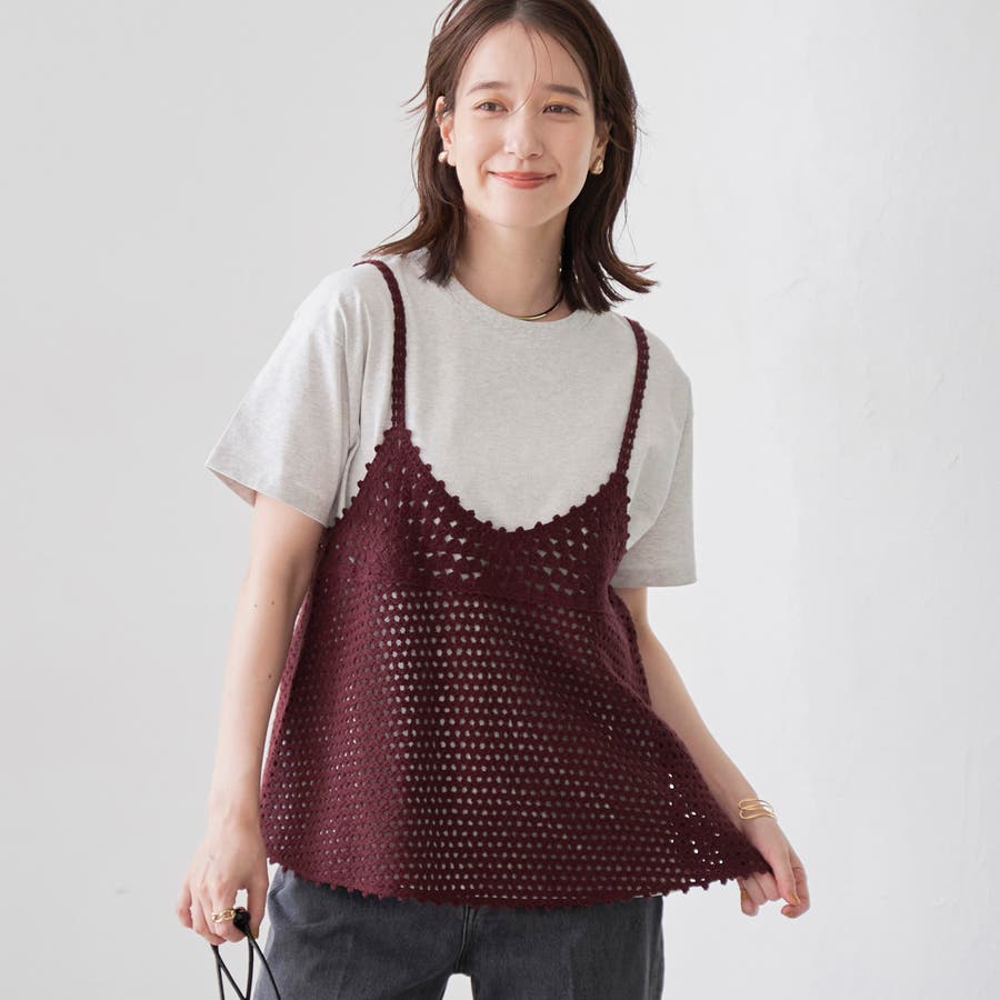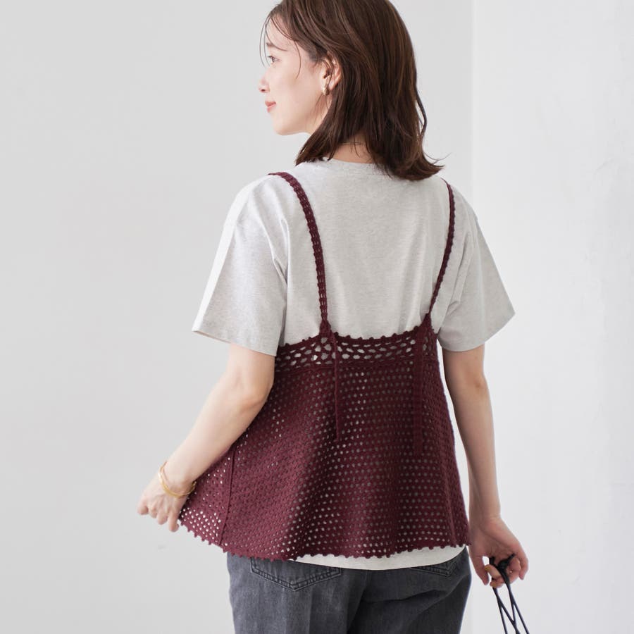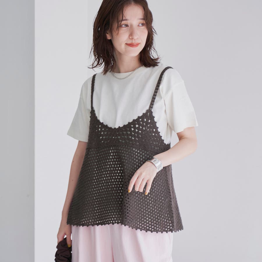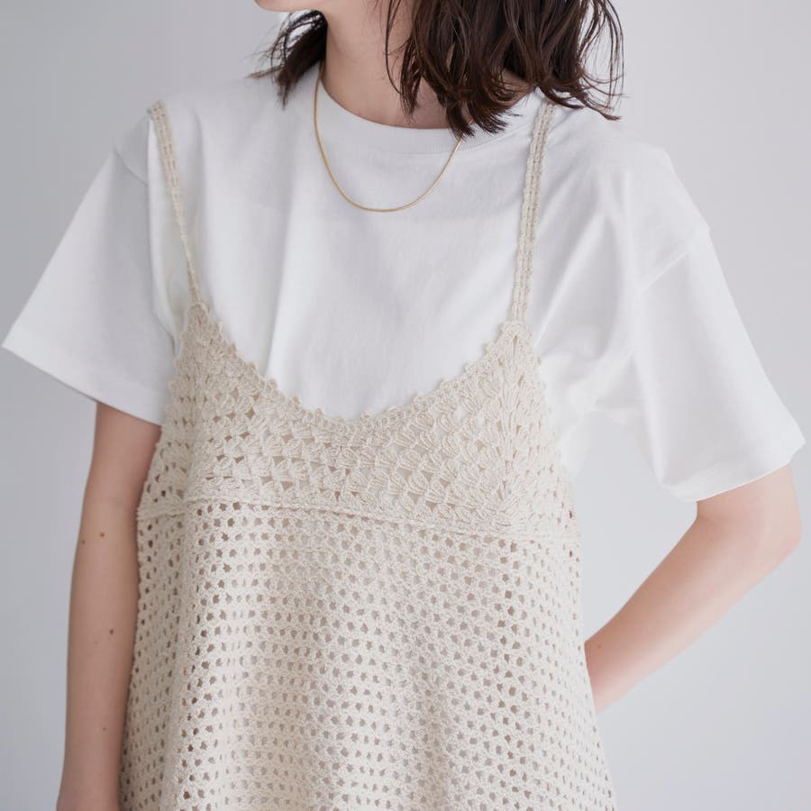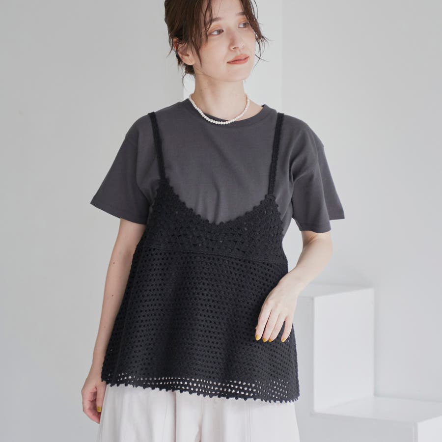 クロシェ編みのキャミソールとTシャツがセットになった、着こなしの幅が広がる嬉しいアイテム。