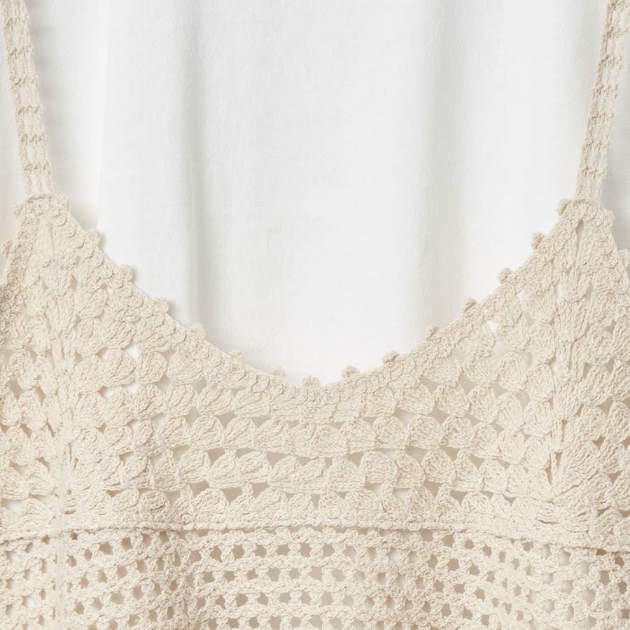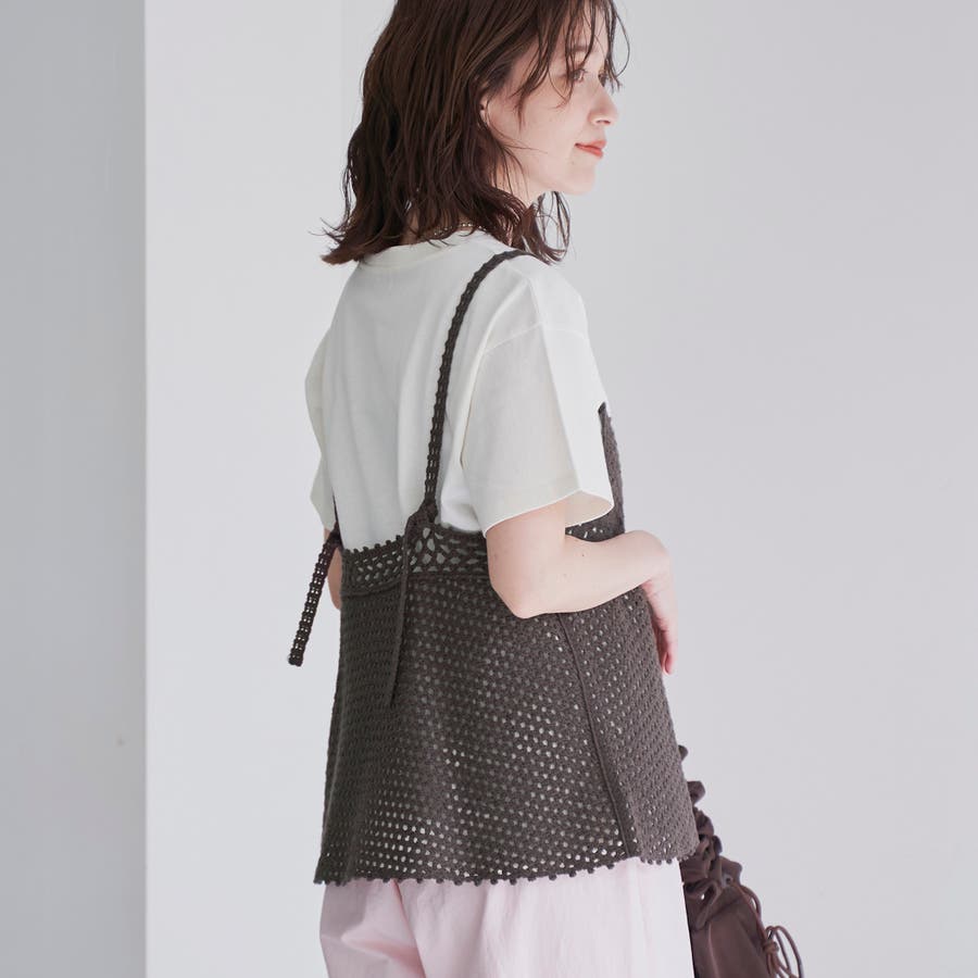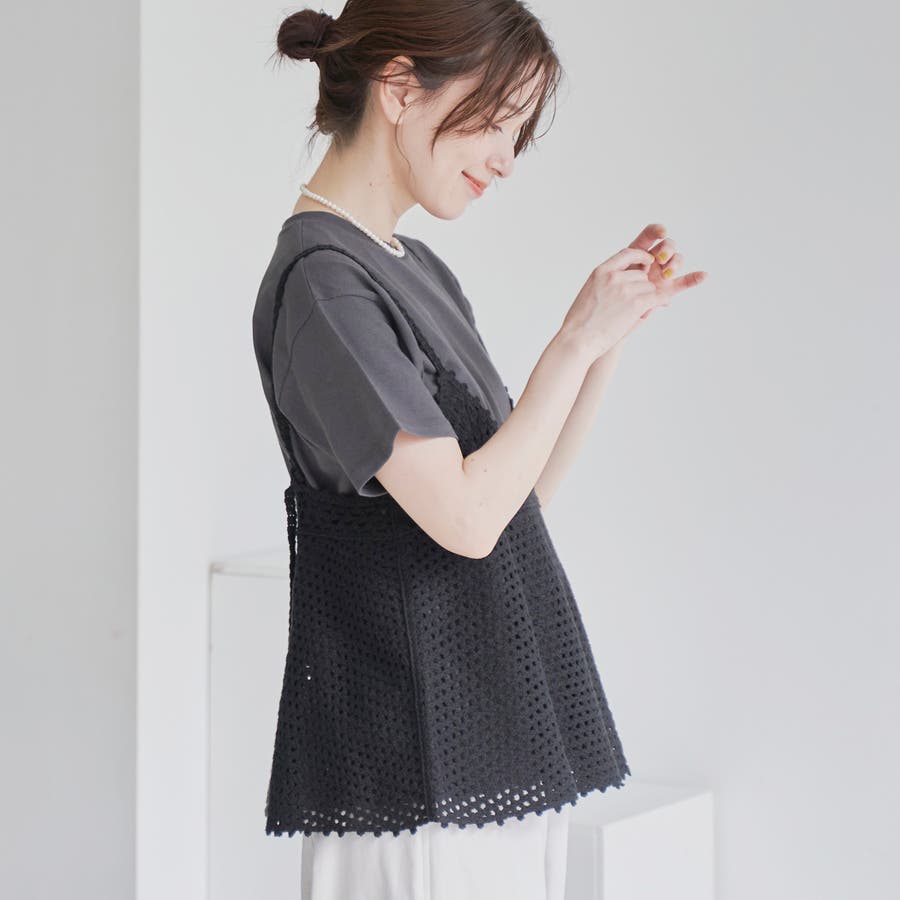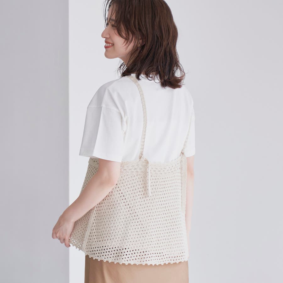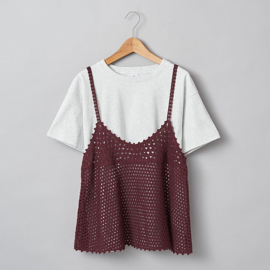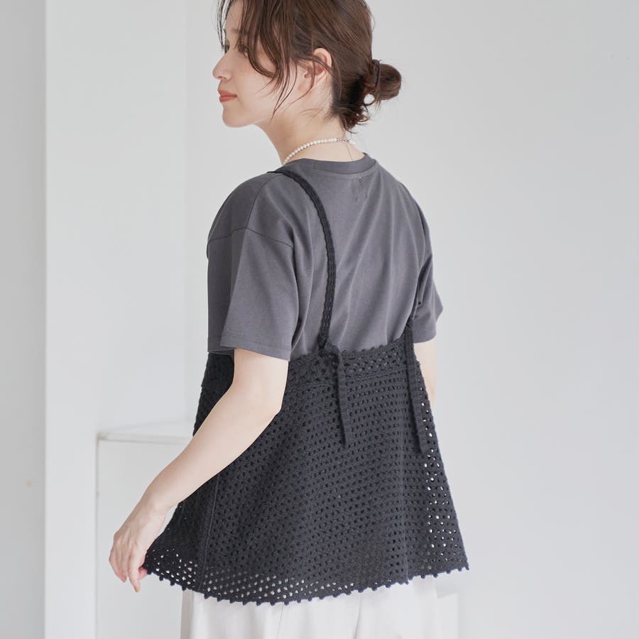 クロシェ編みのキャミソールとTシャツがセットになった、着こなしの幅が広がる嬉しいアイテム。