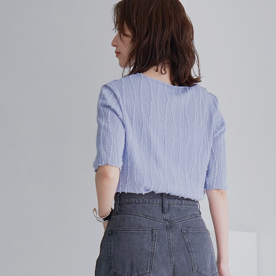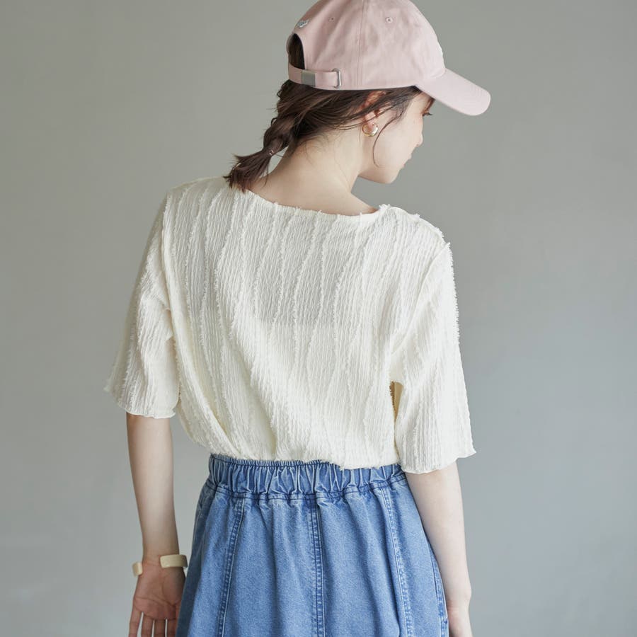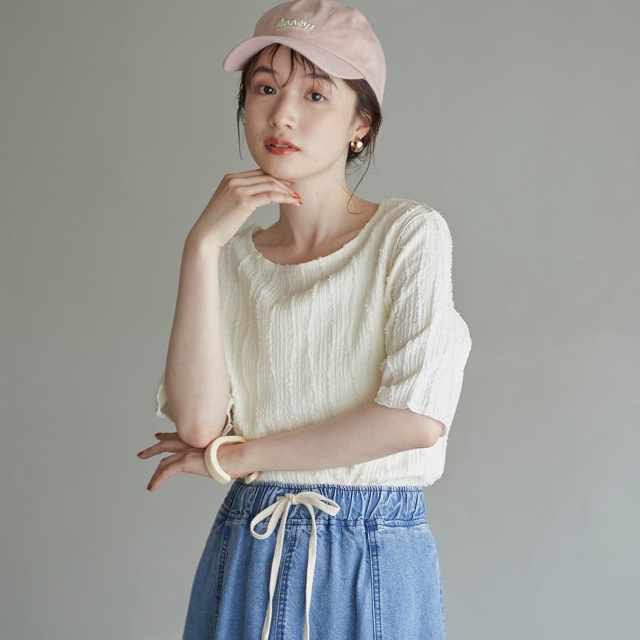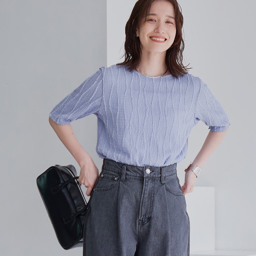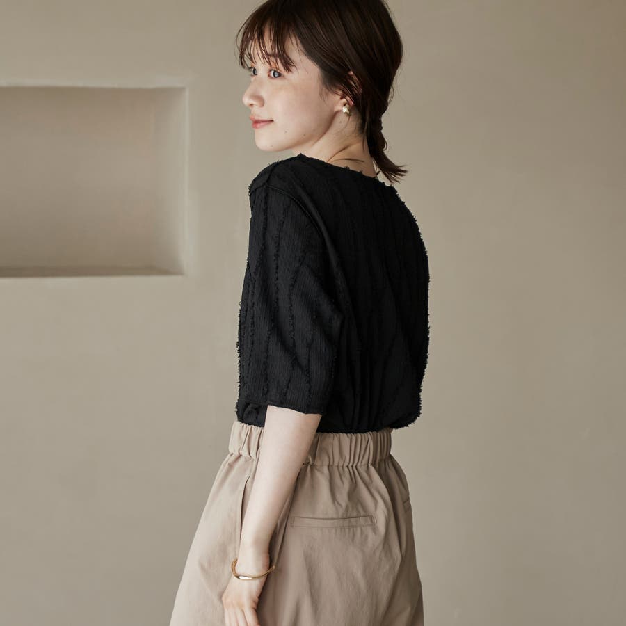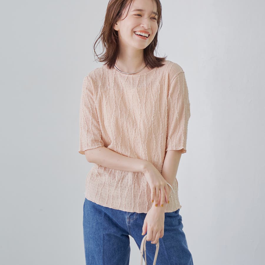 立体的な表面感が華やかで、装いに深みを与えてくれるカットソー。